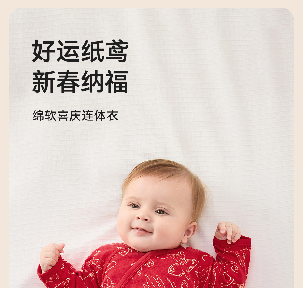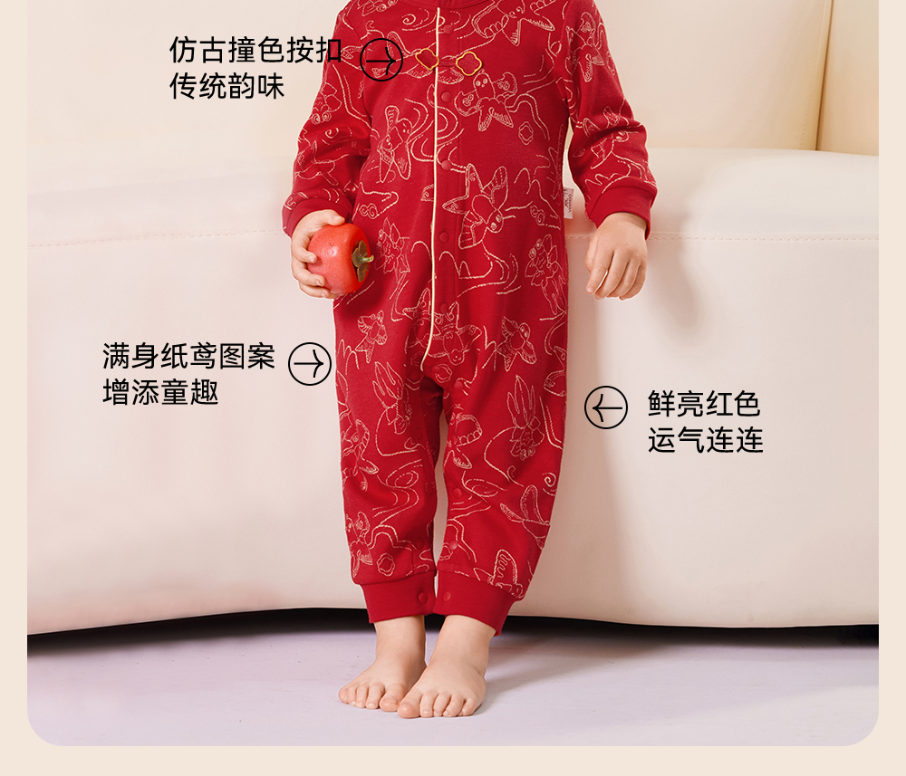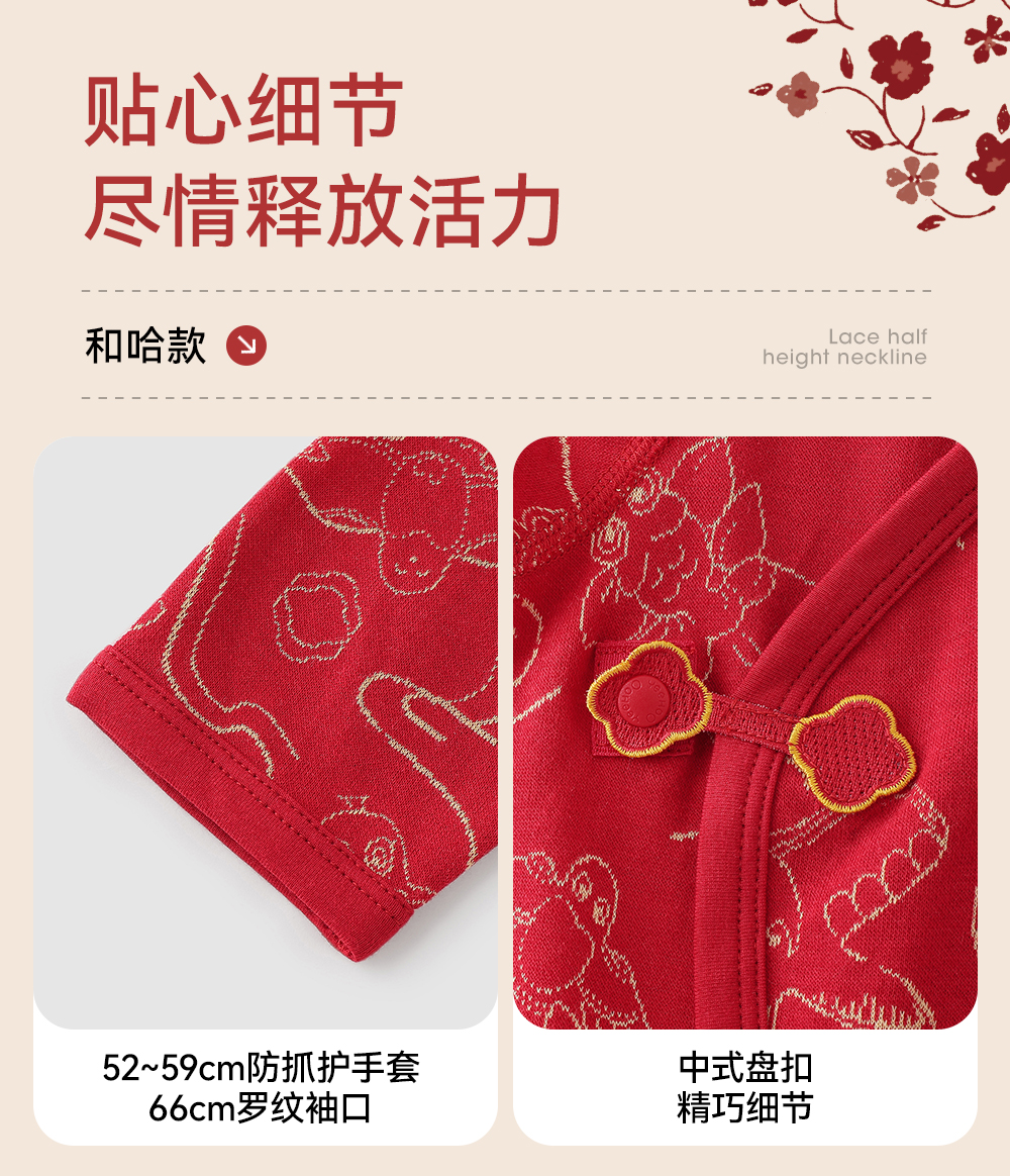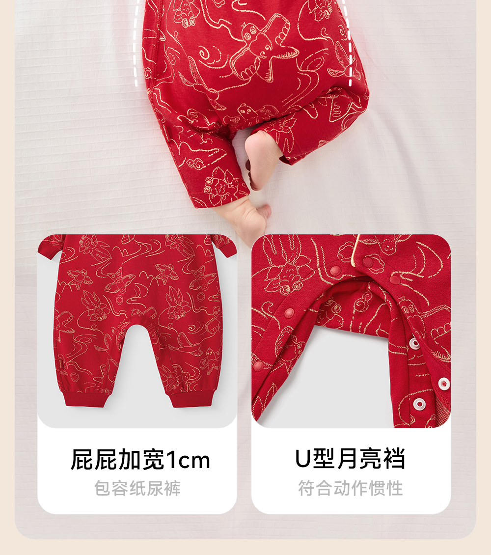 【商场同款】英氏婴儿衣服四季款新生儿宝宝长袖连体衣新年拜年服