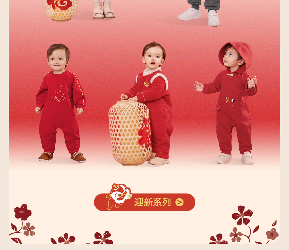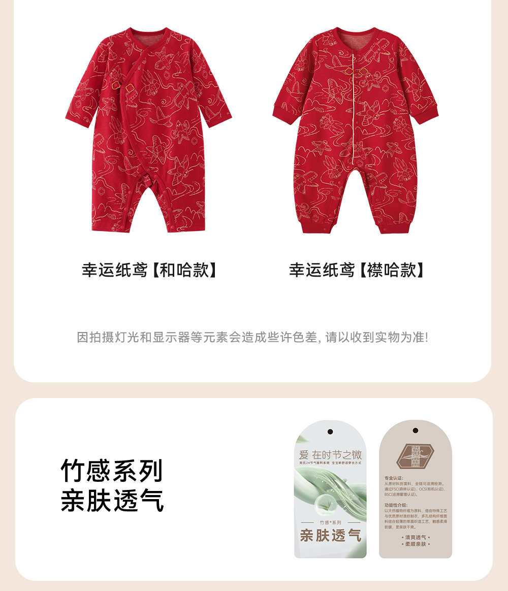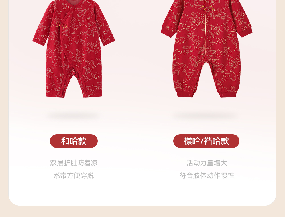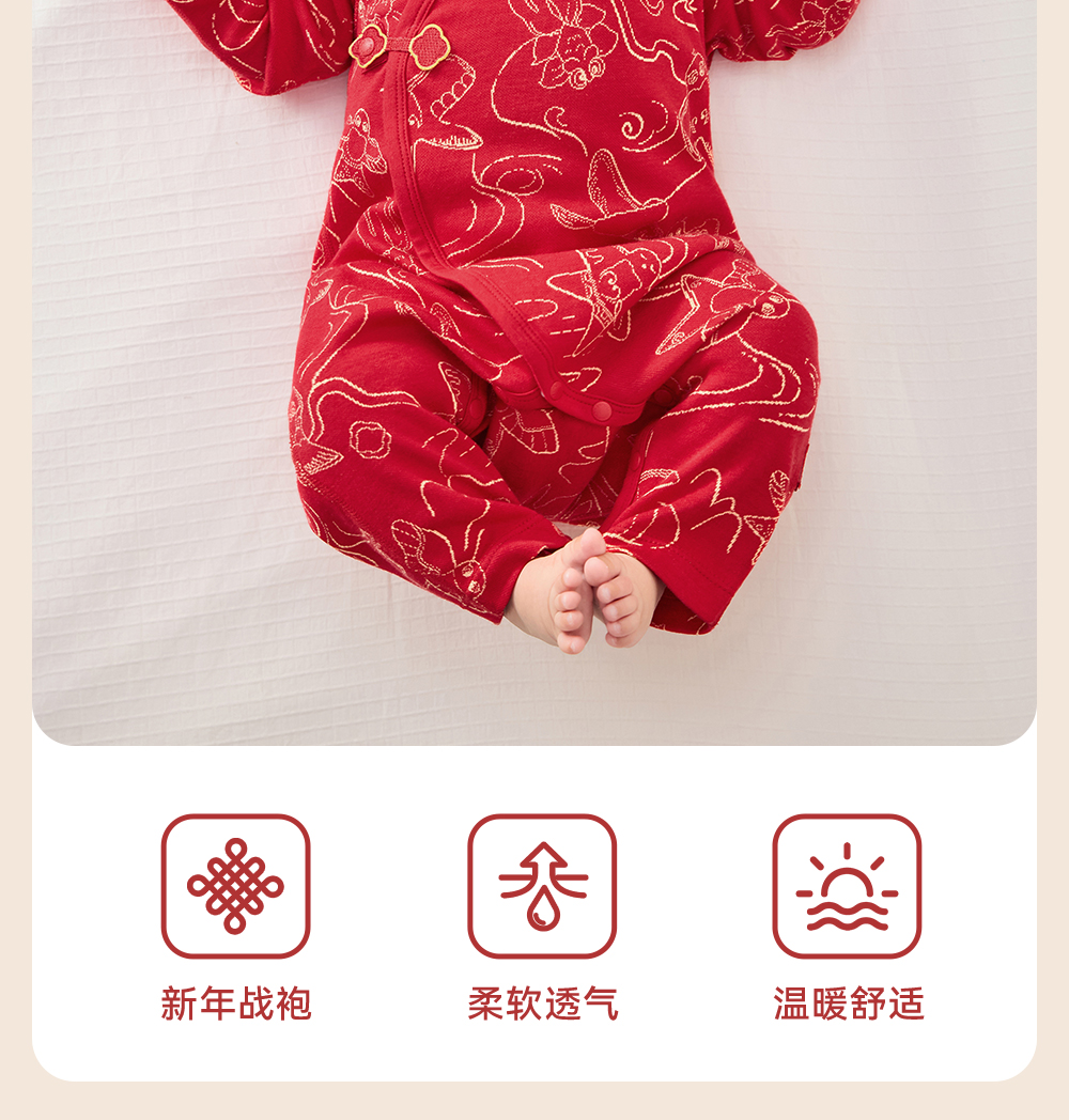 【商场同款】英氏婴儿衣服四季款新生儿宝宝长袖连体衣新年拜年服