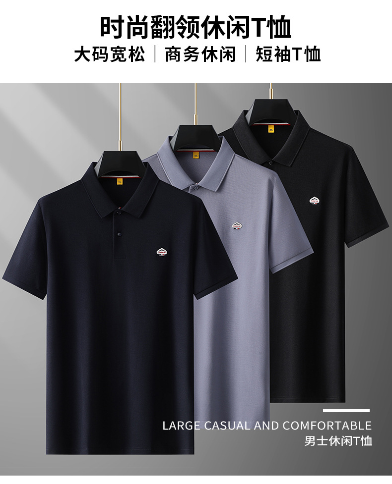 【莫代尔+桑蚕丝+亚麻】【DG】大依优型大码短袖POLO衫体恤莫代尔加肥大码翻领上衣肥佬半袖夏装T恤男士