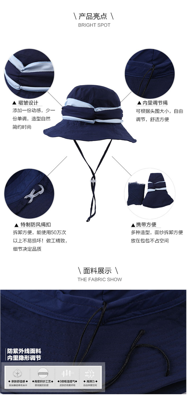 可折叠防蚊虫、防晒遮脸、防紫外线,渔夫大沿遮阳帽WQ0329