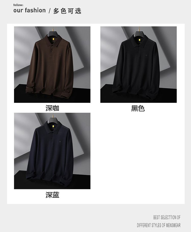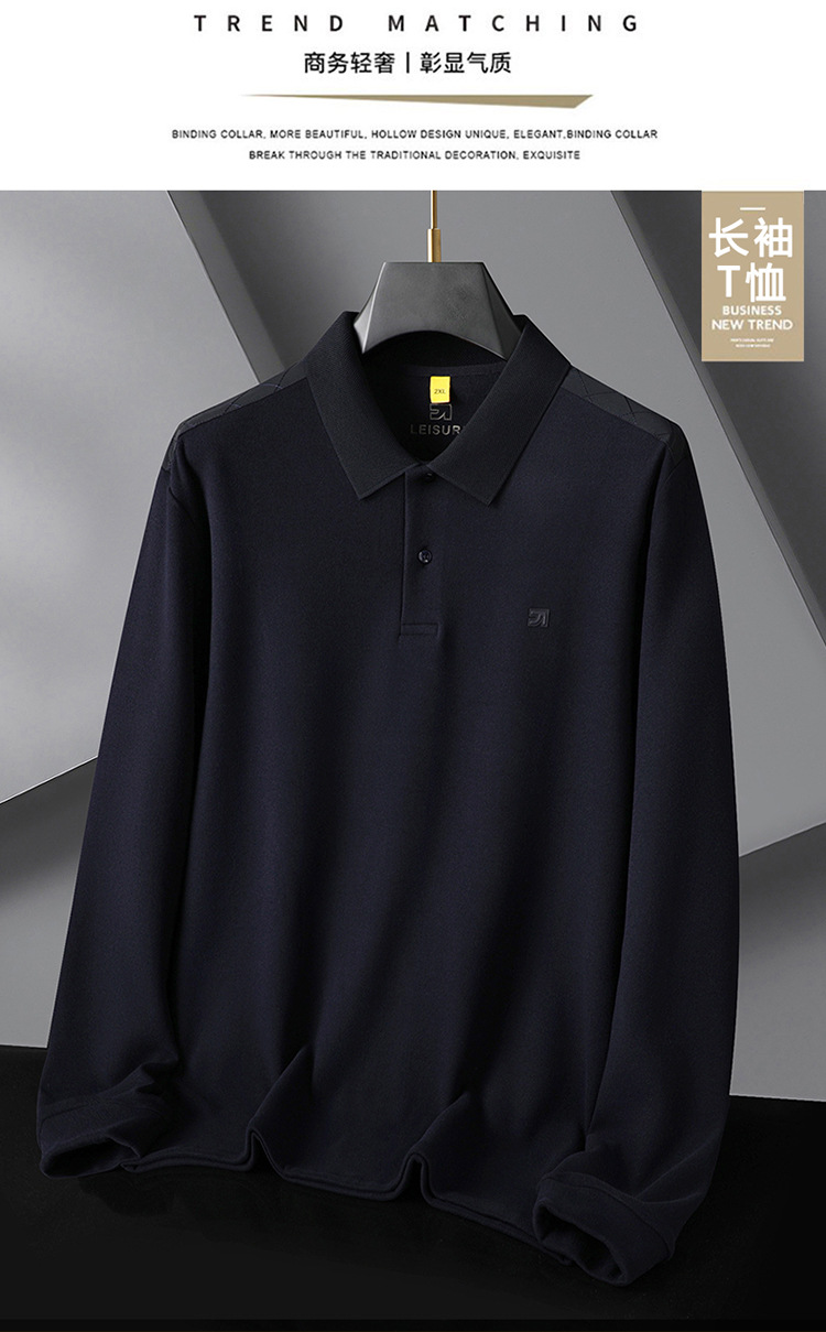 【桑蚕丝+莱赛尔】【DG】大依优型大码男士长袖T恤翻领商务Polo衫秋季新款男加肥加大码休闲长袖T恤打底衫