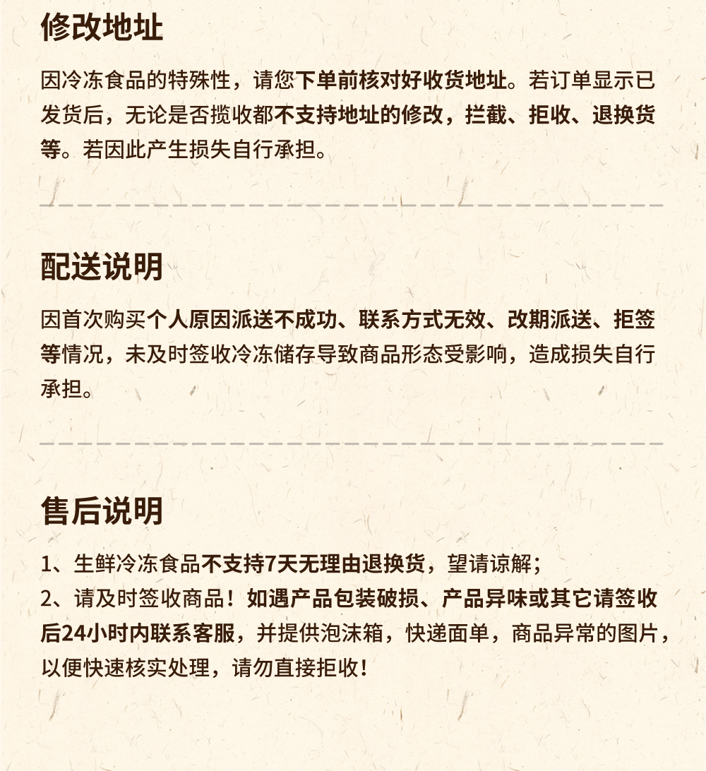【售后/质保政策】食品不支持7天无理由,不支持拦截拒收