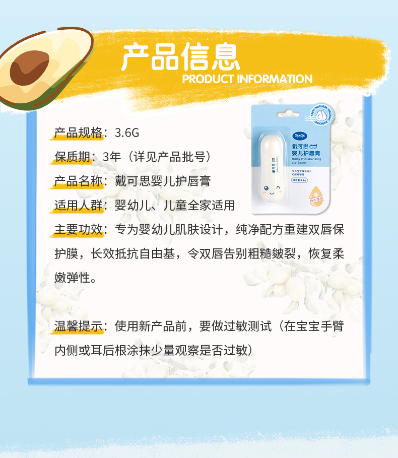 戴可思食品级婴儿专用润唇膏3.6g