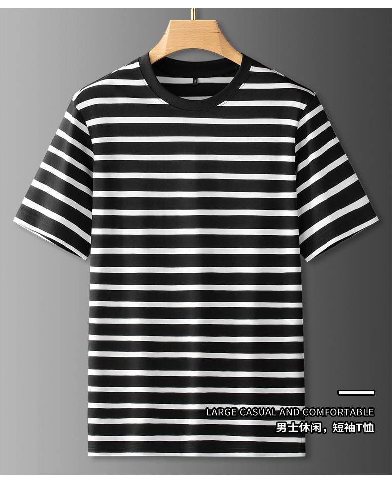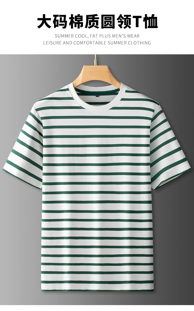 【棉质】【DDS】大依优型大码圆领条纹短袖T恤夏季新款肥佬休闲棉质加肥加大上衣男士胖子