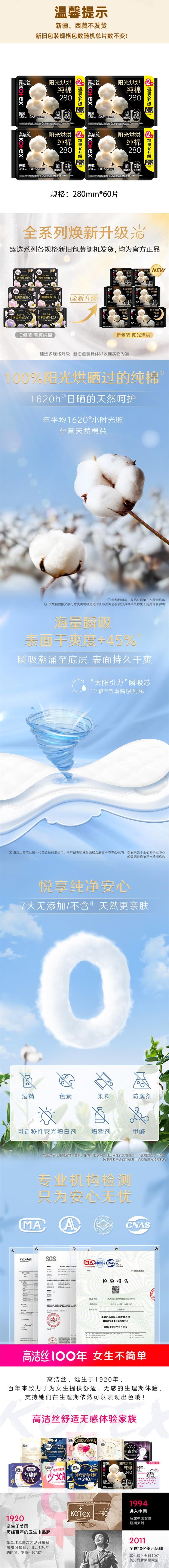 高洁丝 全新阳光烘烘纯棉日夜用卫生巾280mm13+2片*4包 JGS0HY15P4B