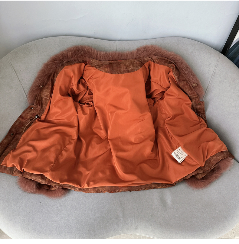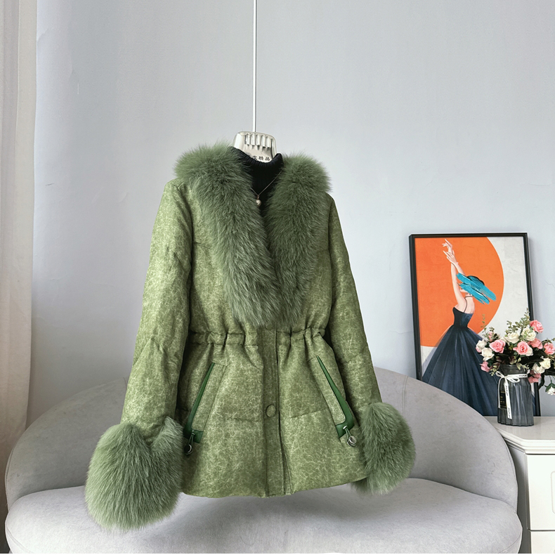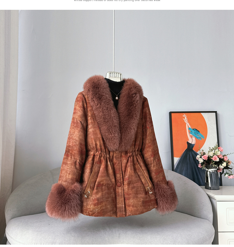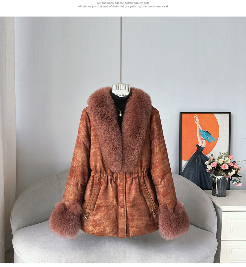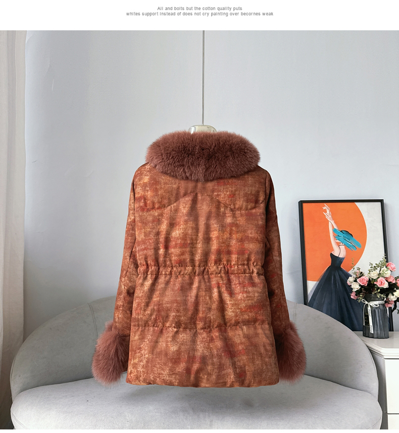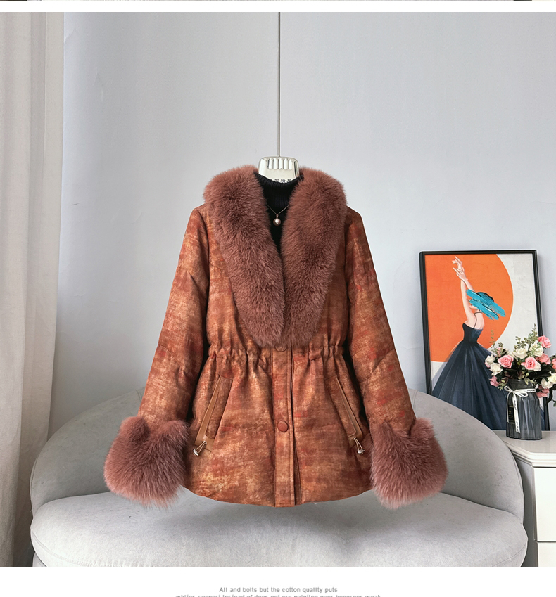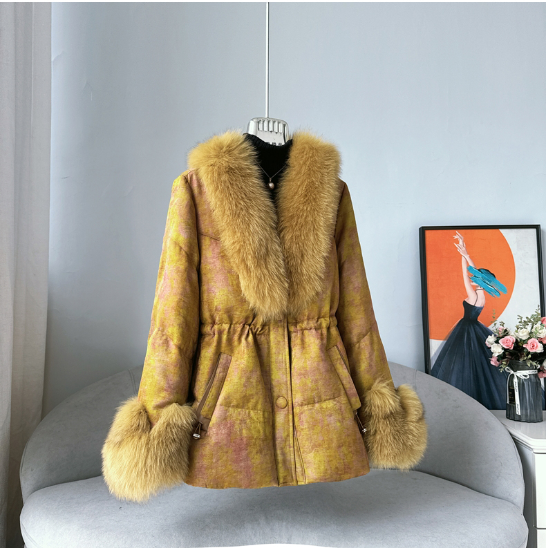 SR 266329狐狸毛皮草中长款显瘦白鹅羽绒服外套国风提花