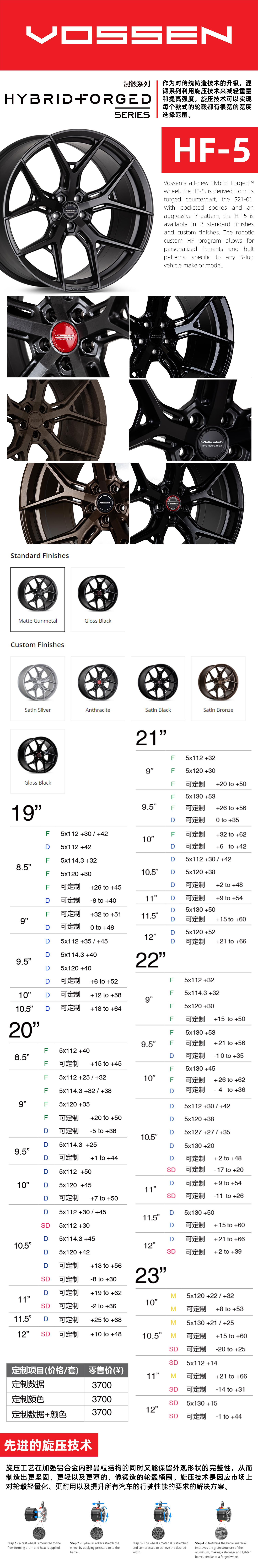 Vossen HF5 混锻轮圈 19/20/21/22/23/24 美国进口 数据颜色可定制 全车型适用 No.250617
