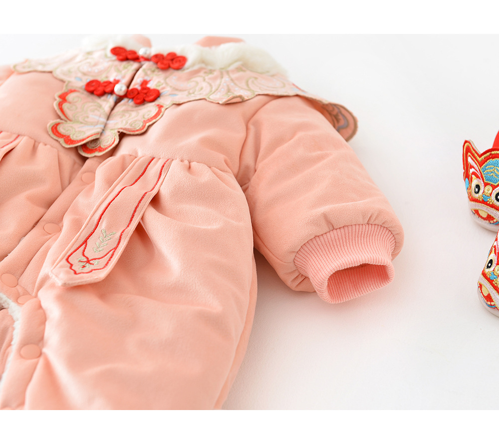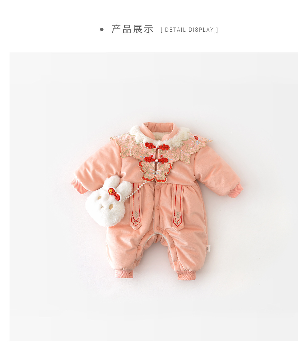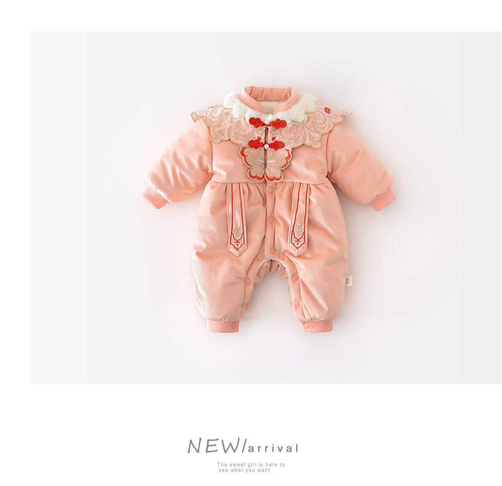 双12抢先购!【温暖包裹!给宝宝全方位呵护】婴儿衣服冬装连体衣女宝宝,中国风刺绣加绒加厚新年装周岁服拜年服,好面料、多尺码选择