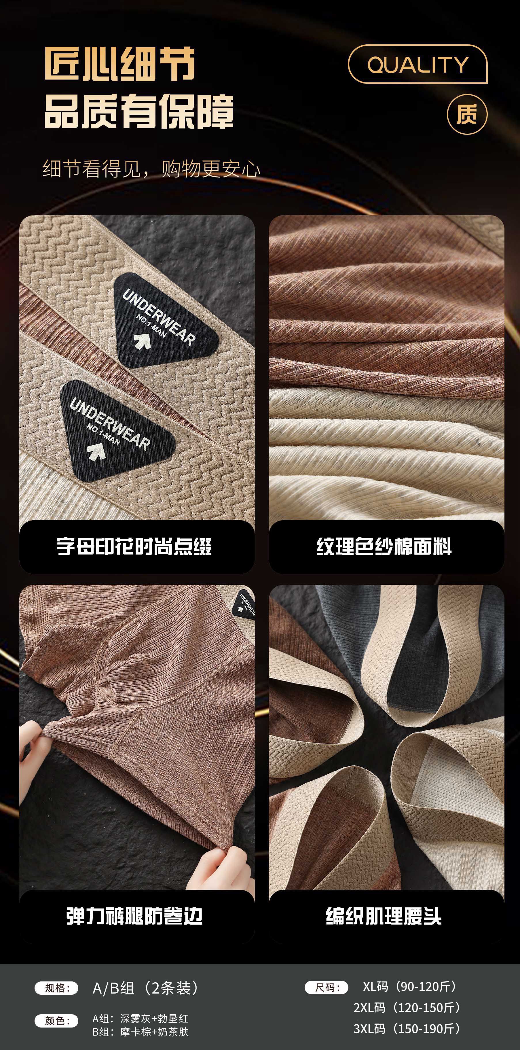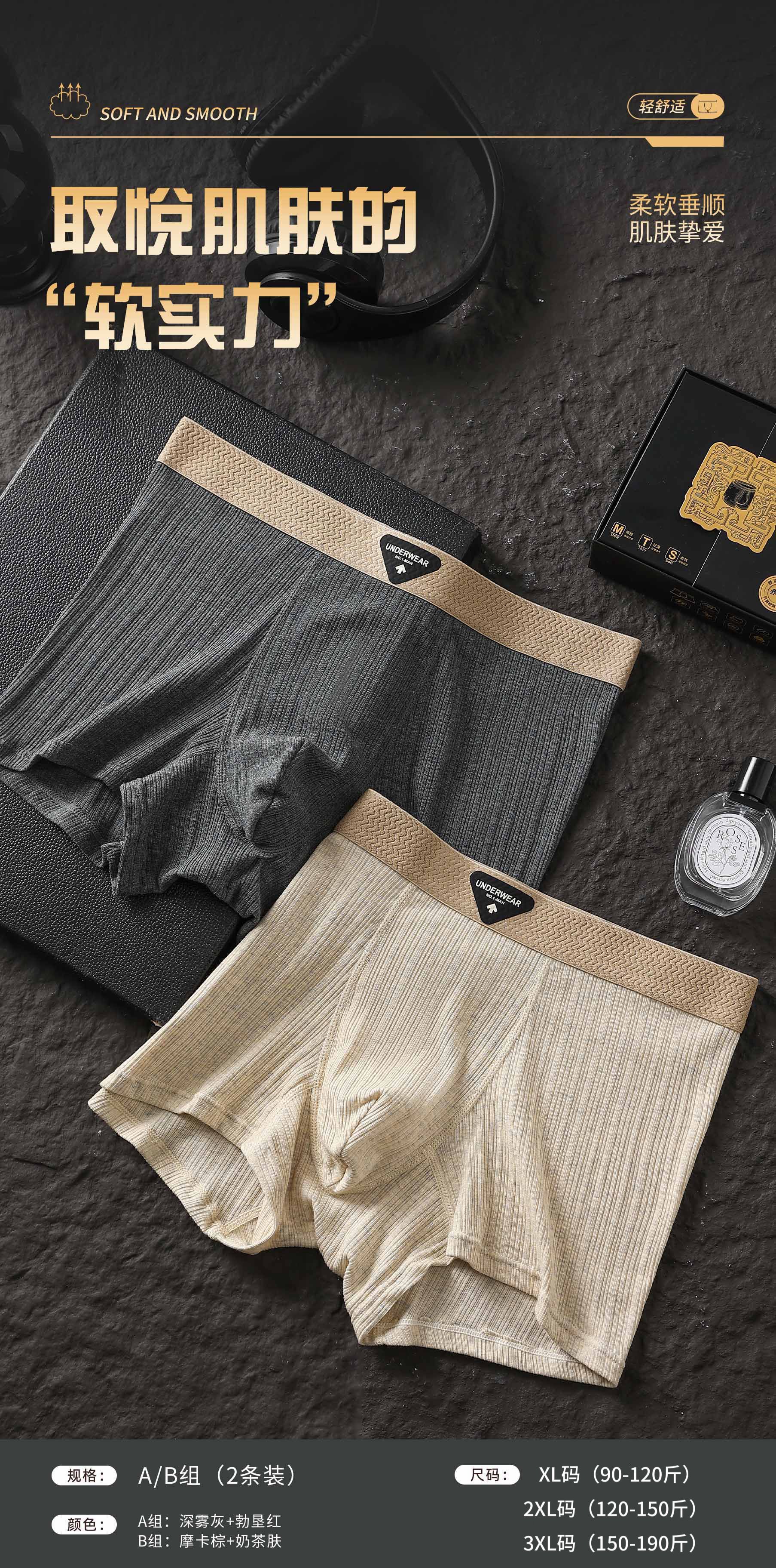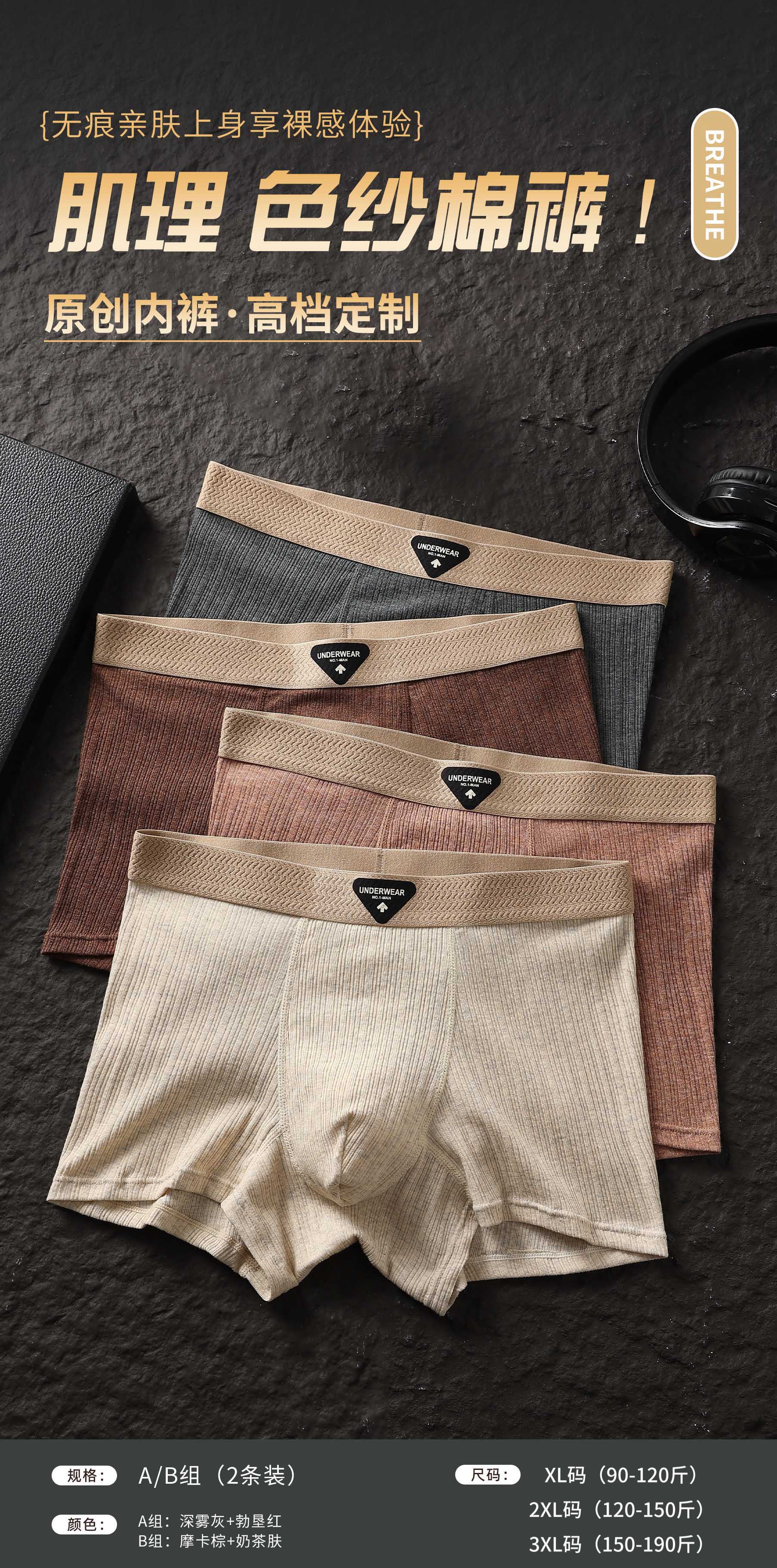 【纹理纱棉❗️亲肤舒爽】秋季新款芭蕉先生原创肌理色纱棉无痕内裤男速干运动大码平角内裤。jc