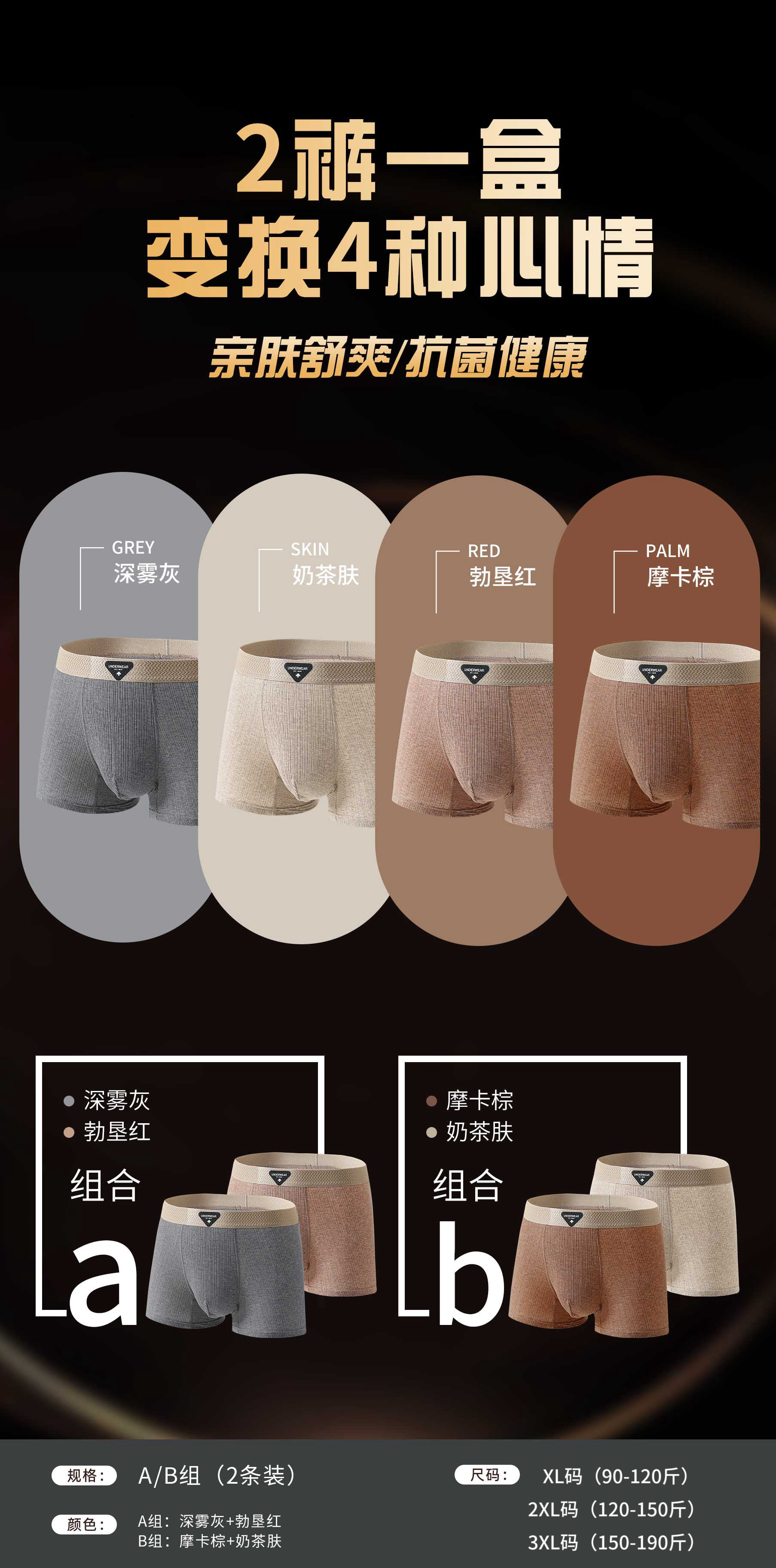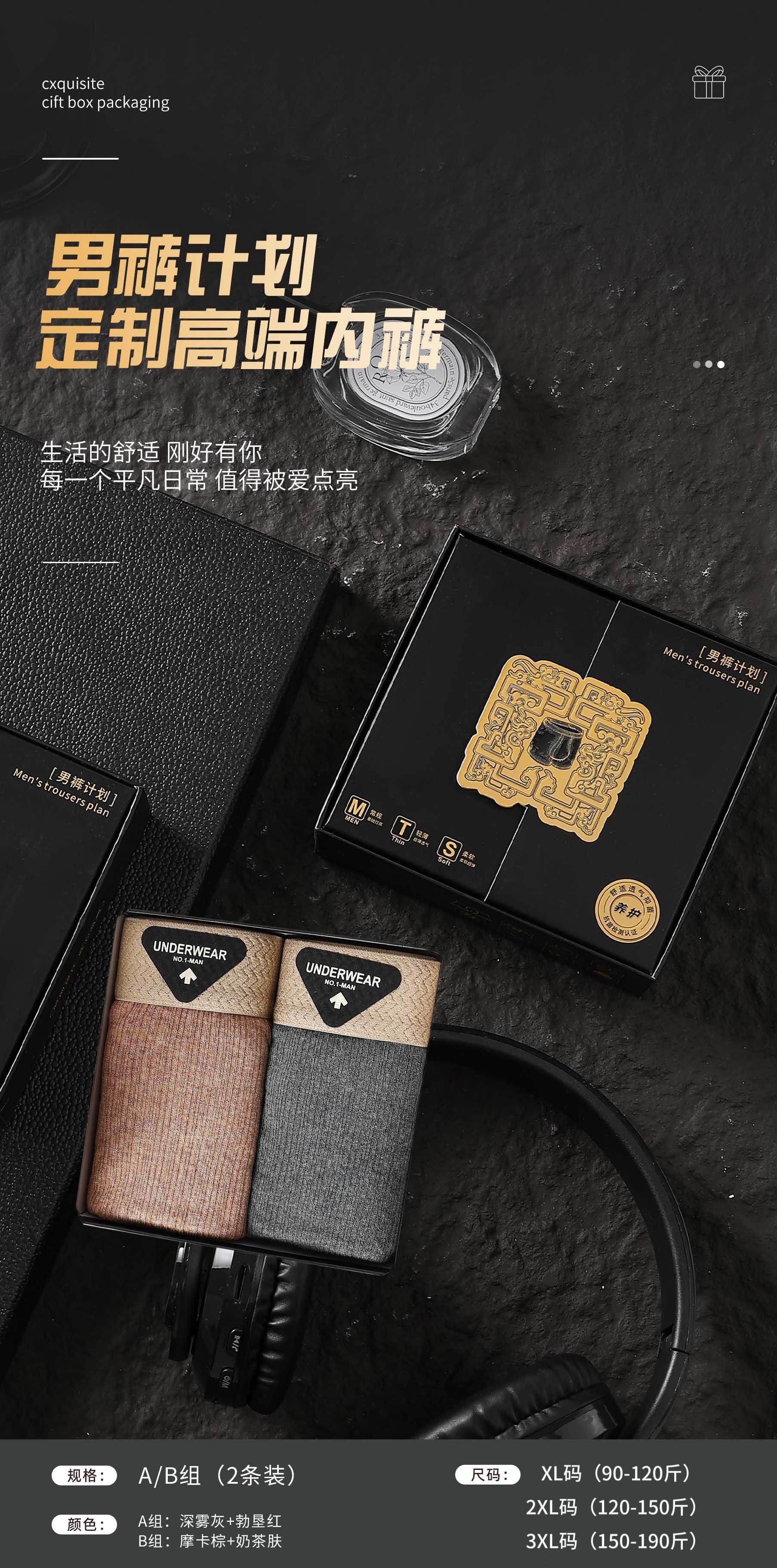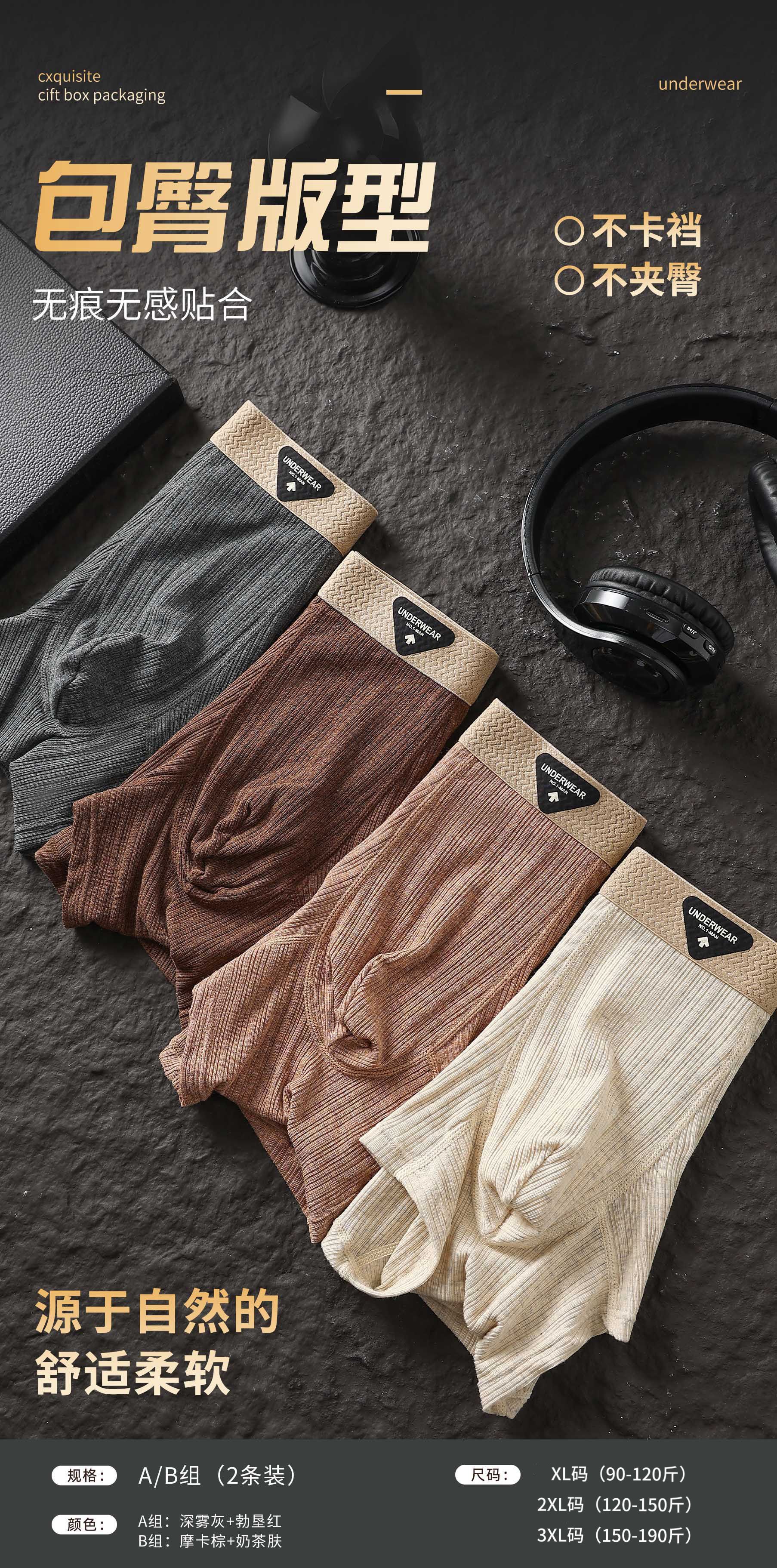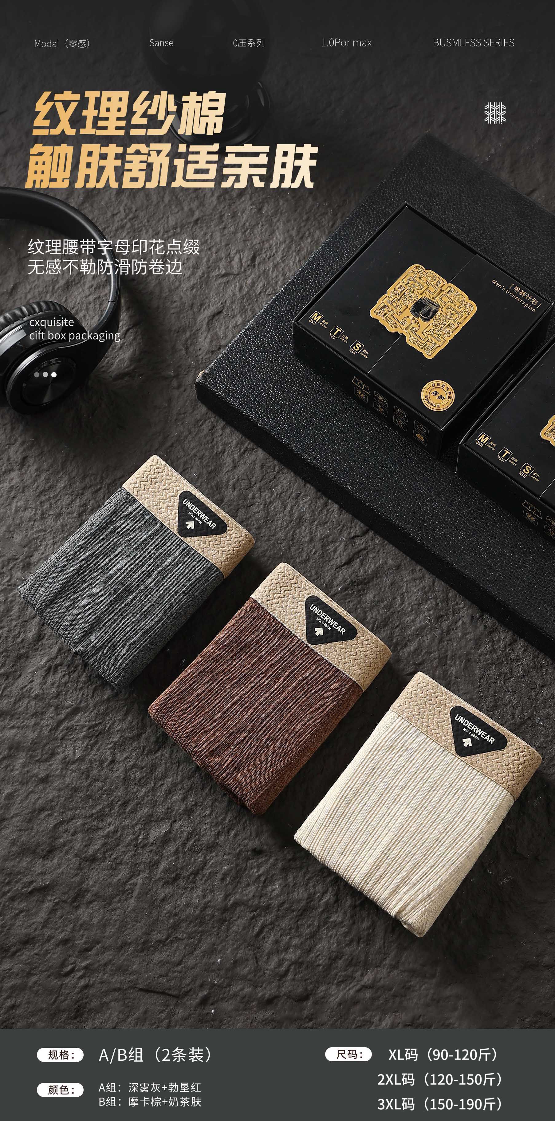【纹理纱棉❗️亲肤舒爽】秋季新款芭蕉先生原创肌理色纱棉无痕内裤男速干运动大码平角内裤。jc