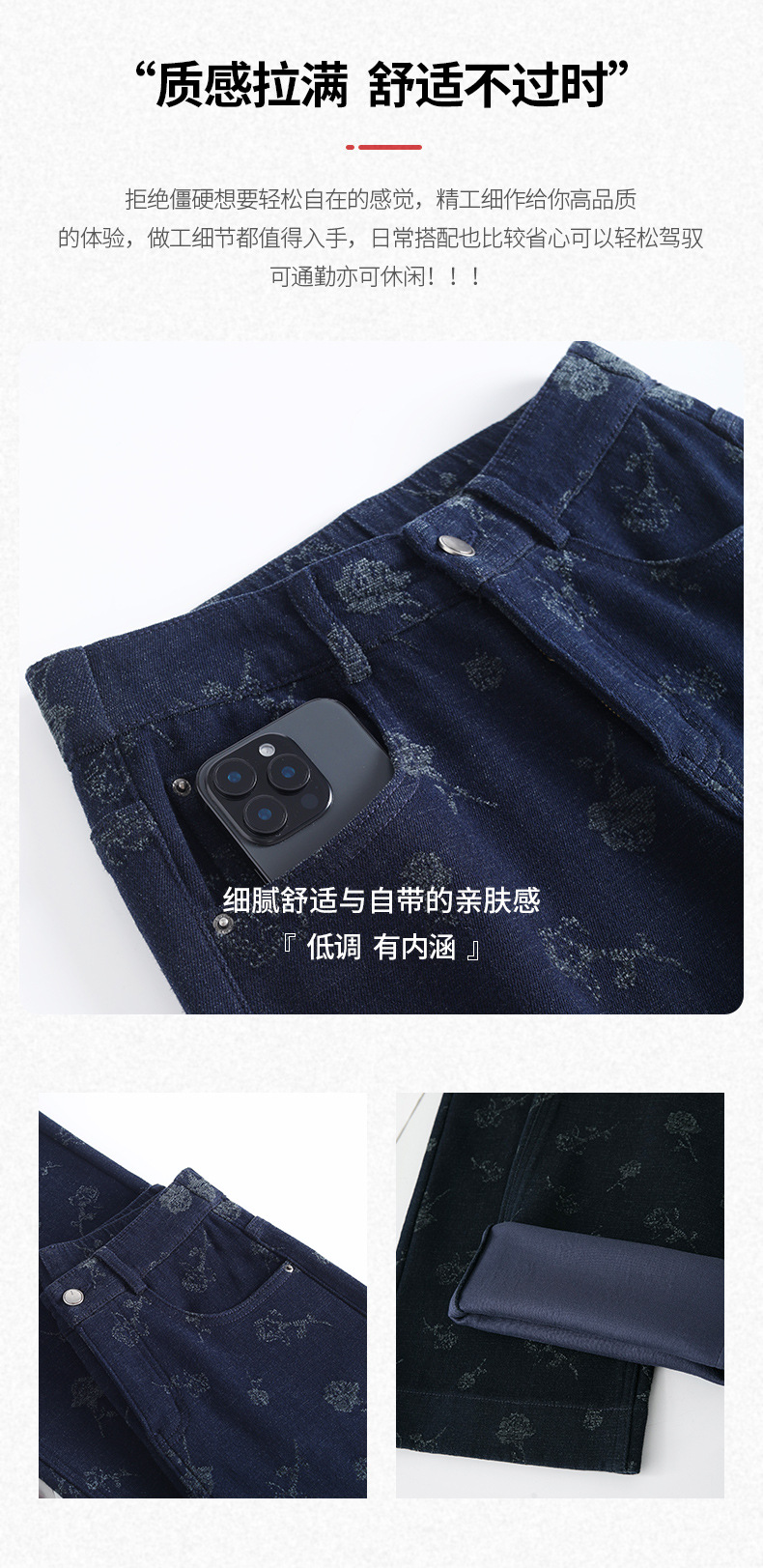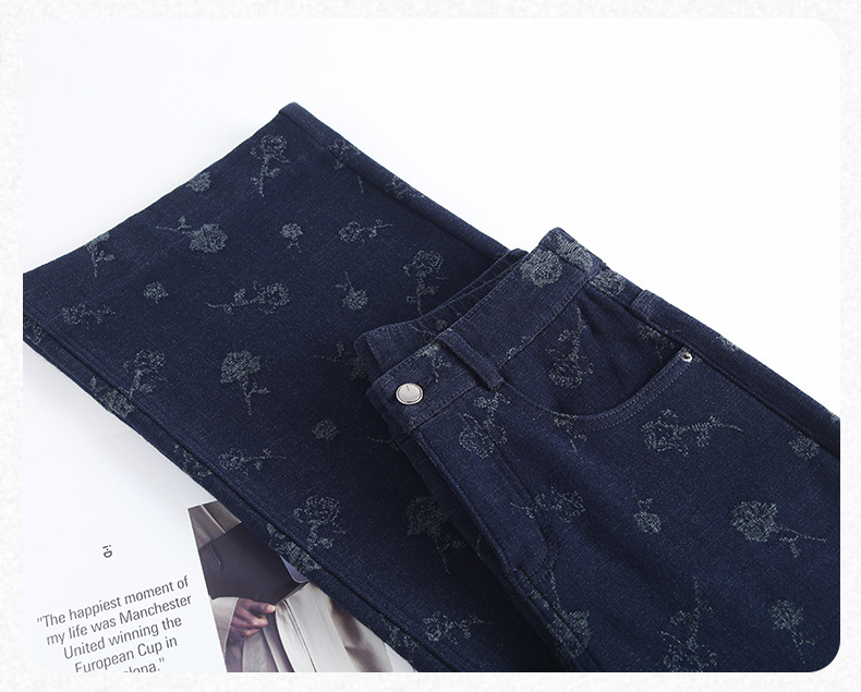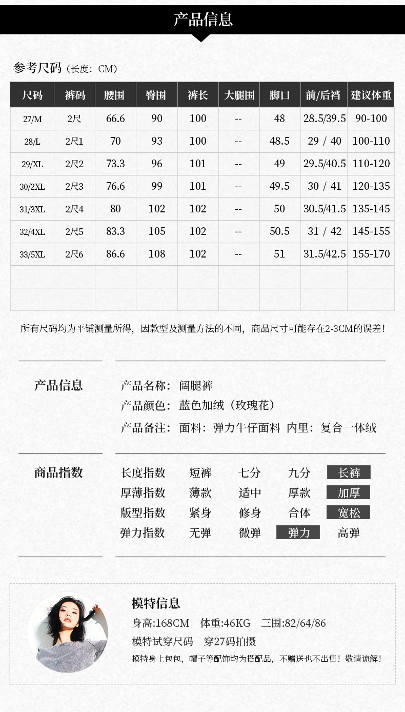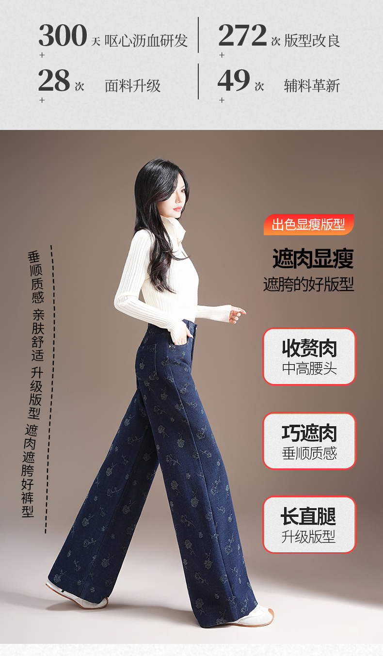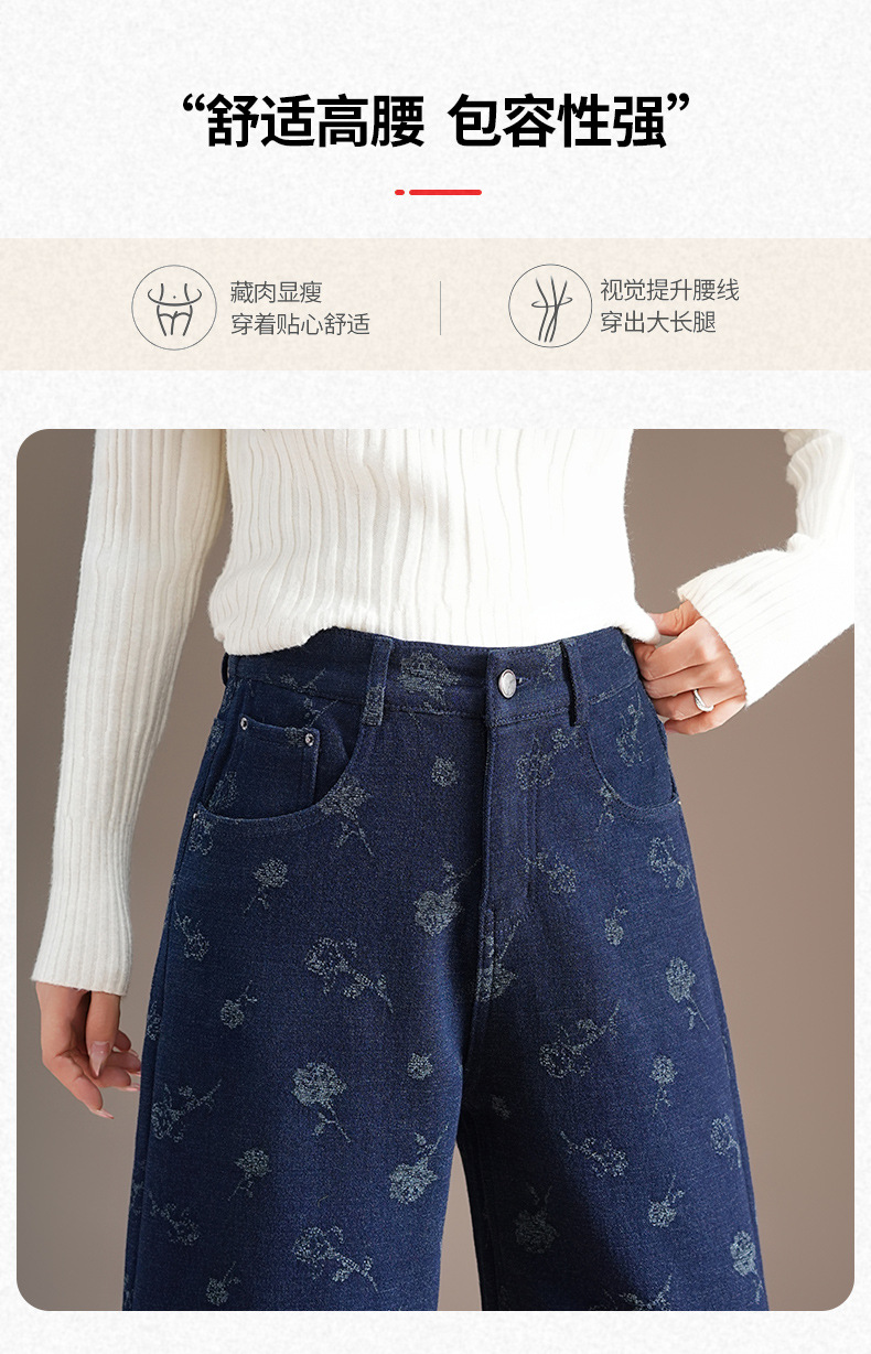 MYX印花牛仔阔腿裤垂坠感修身显瘦直筒裤2025年冬款加绒保暖拖地长裤