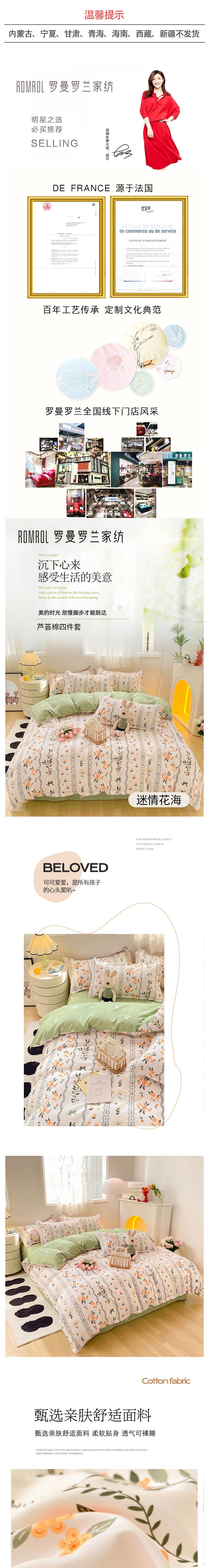 罗曼罗兰 芦荟棉四件套迷情花海200*230cm 6925314787413