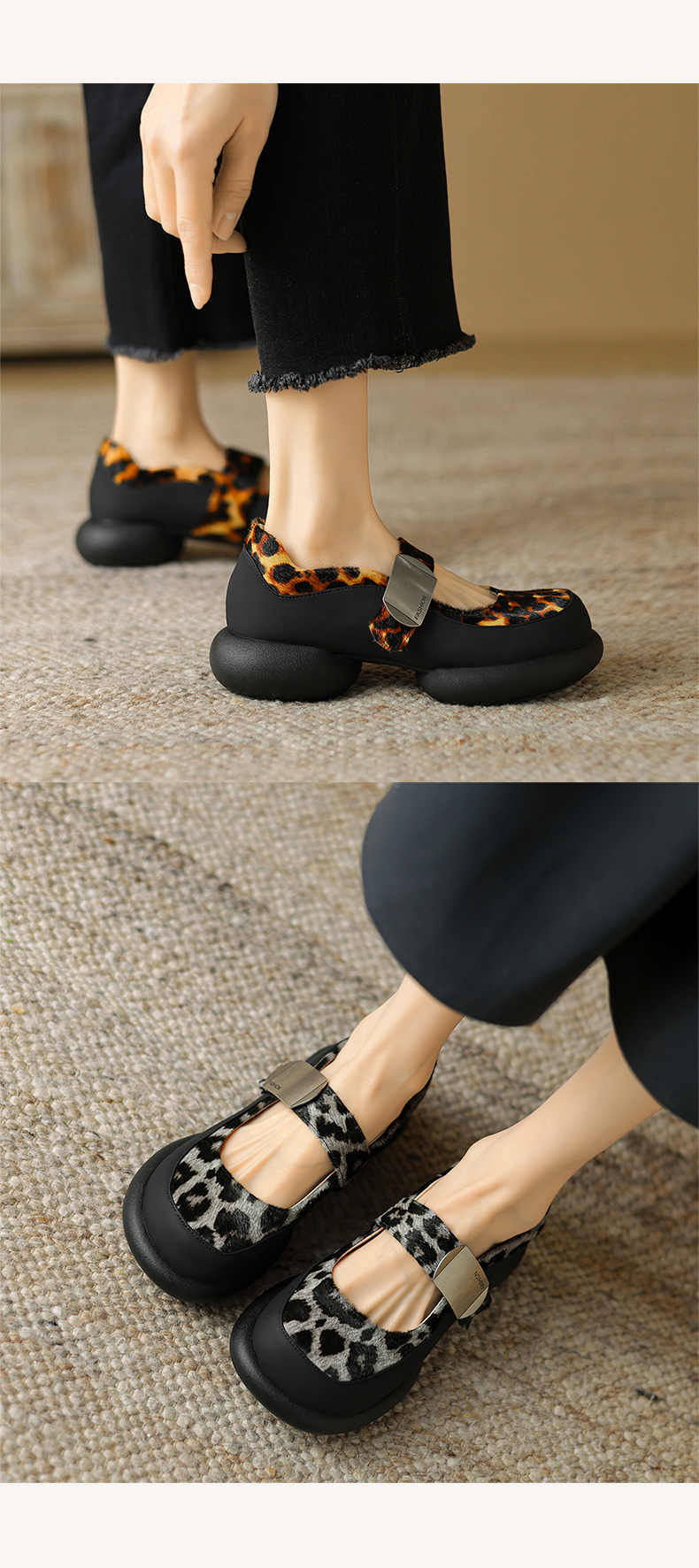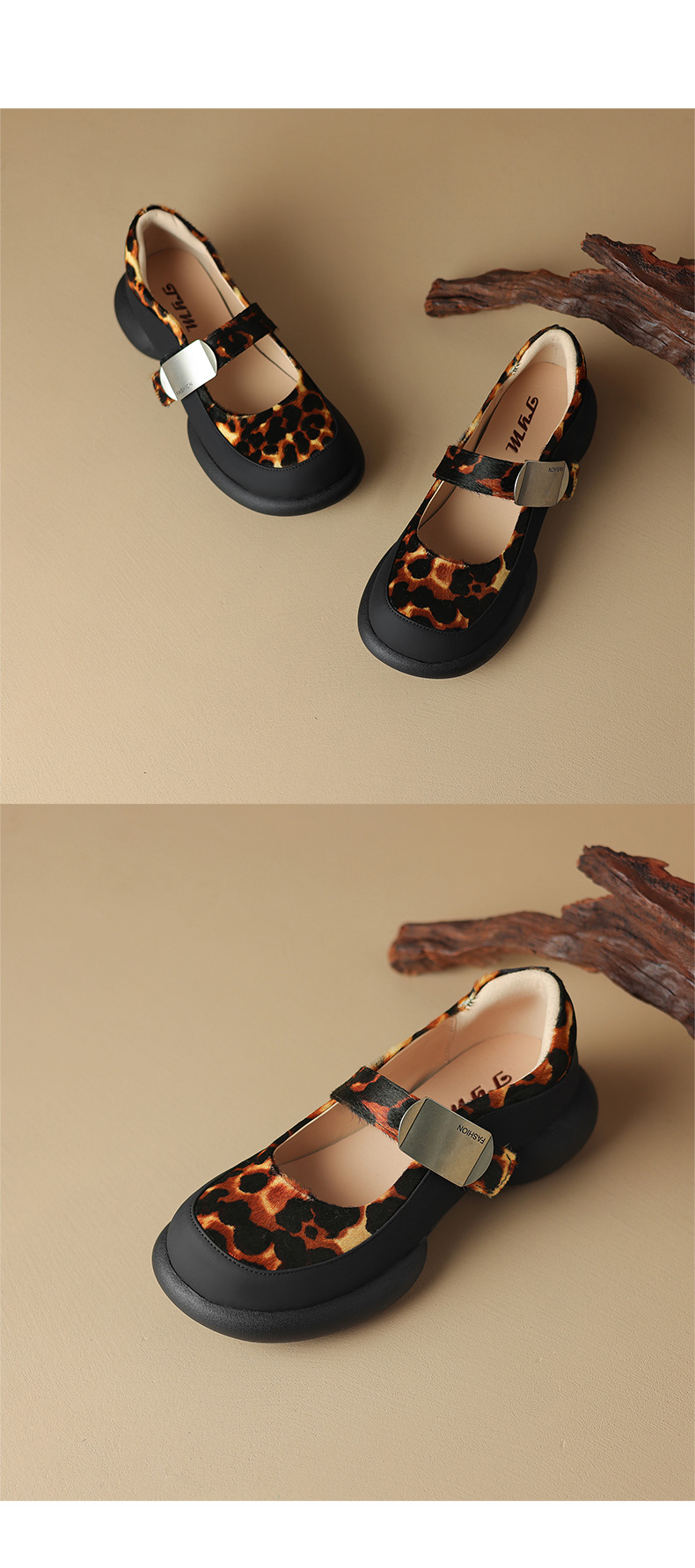 【预售5天】春夏新款,撞色拼接厚底圆头玛丽珍马毛单鞋TYM&6520