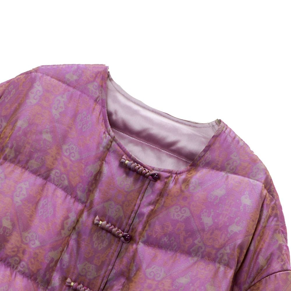 NANSONGSILK/NS浮光锦桑蚕丝90白鹅绒双面穿原创高级感鹅绒服547122南宋