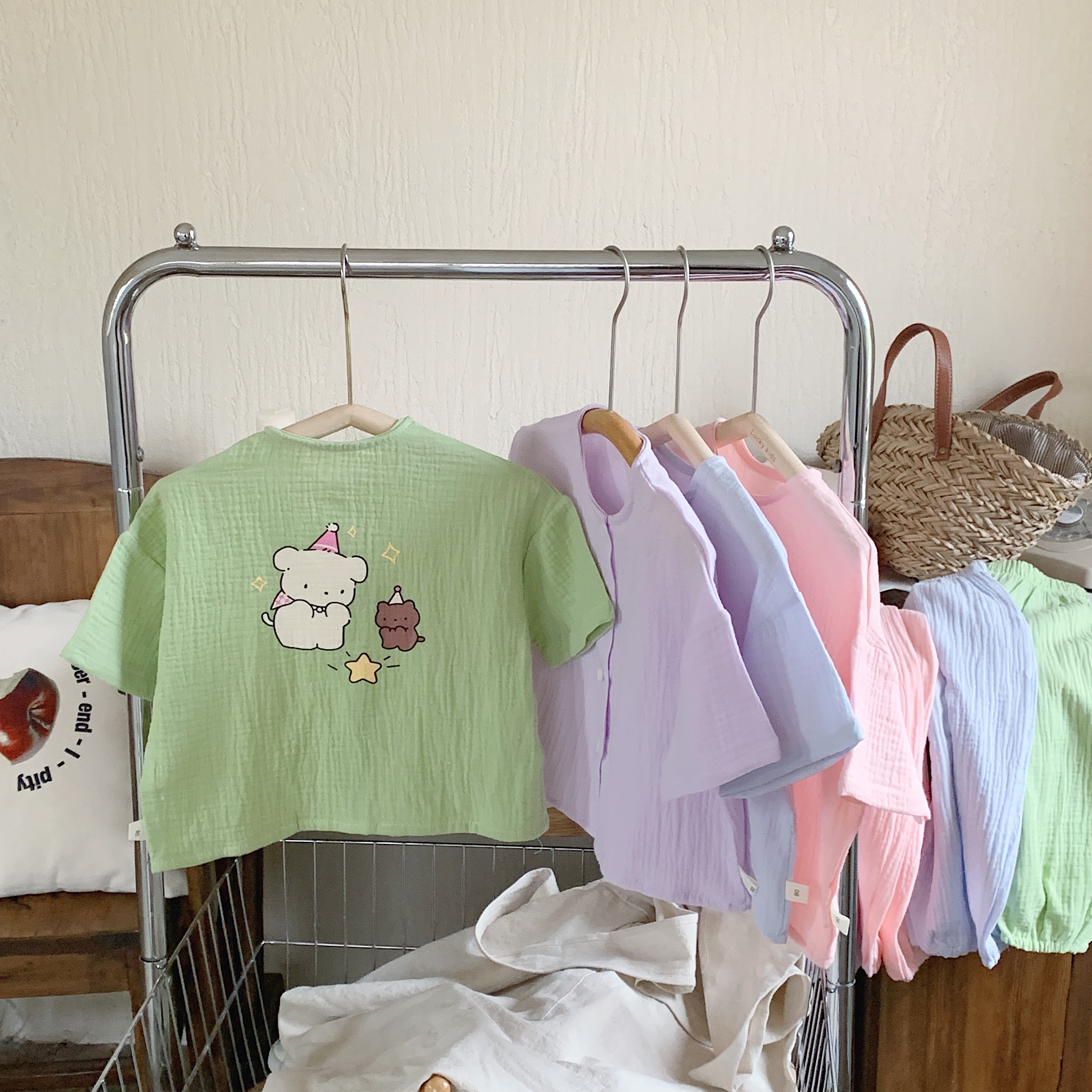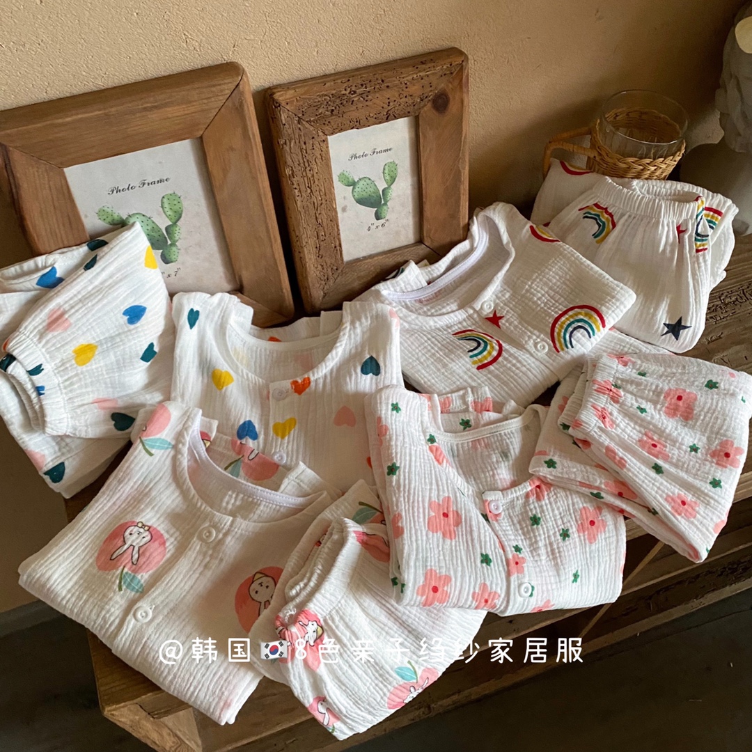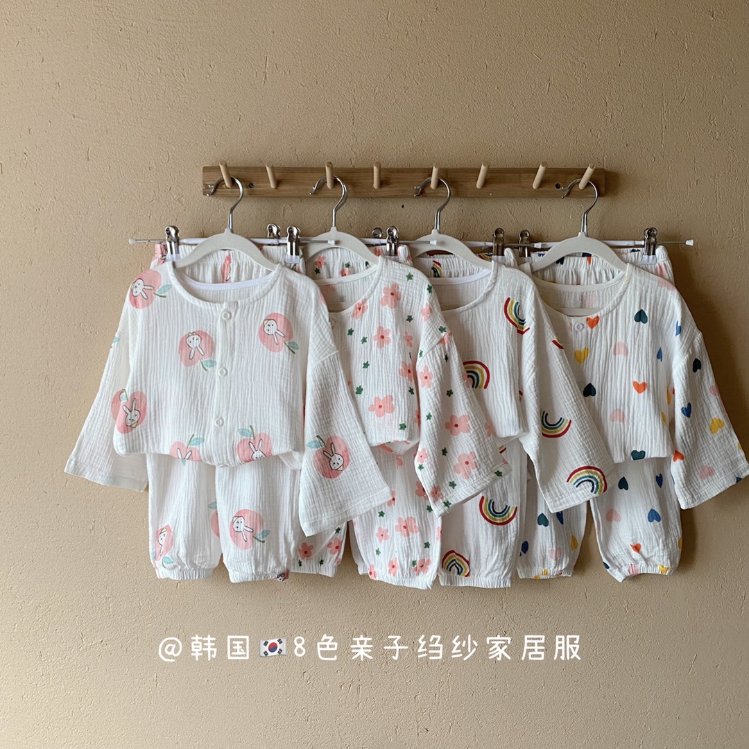 ❣️韩国🇰🇷纯色亲子绉纱家居服