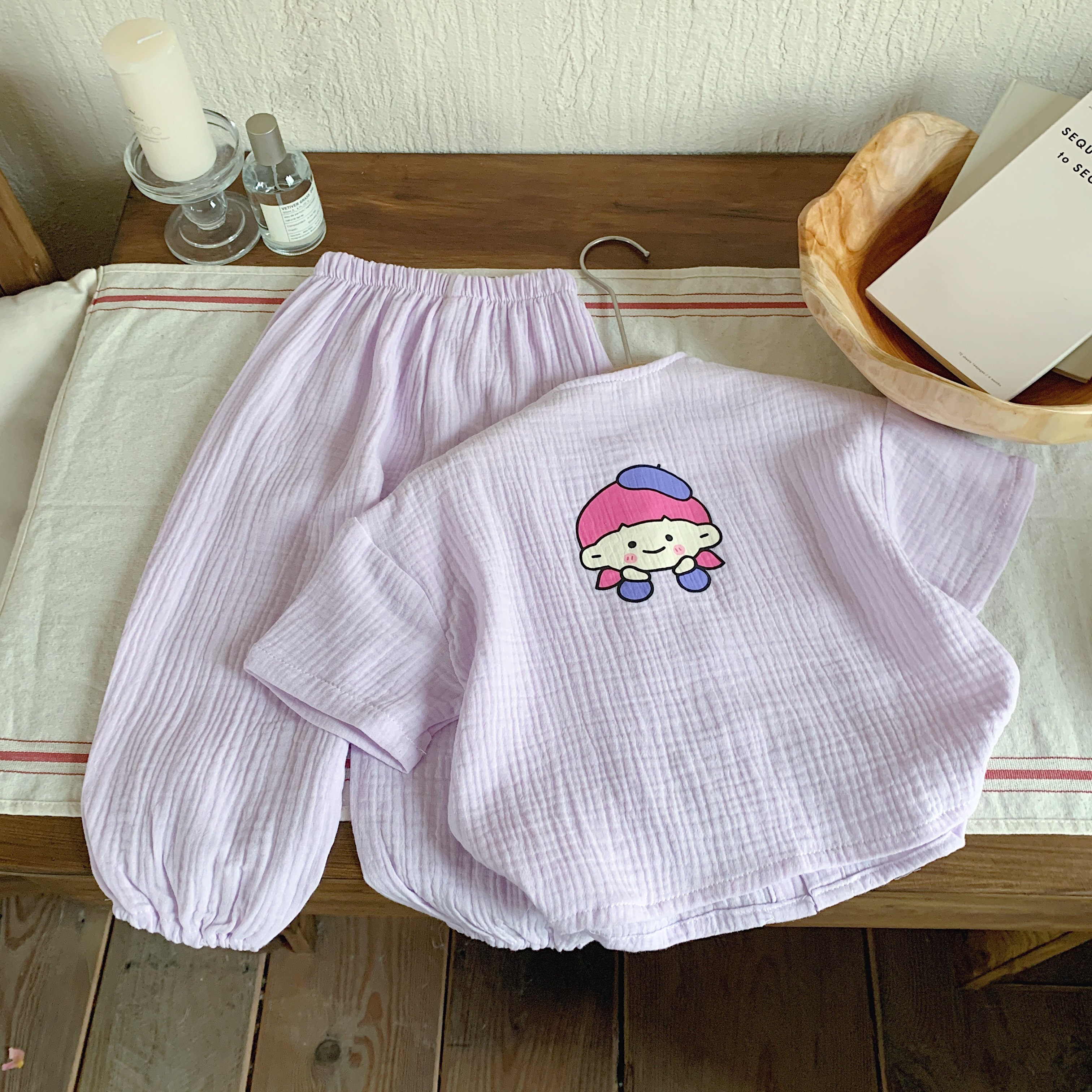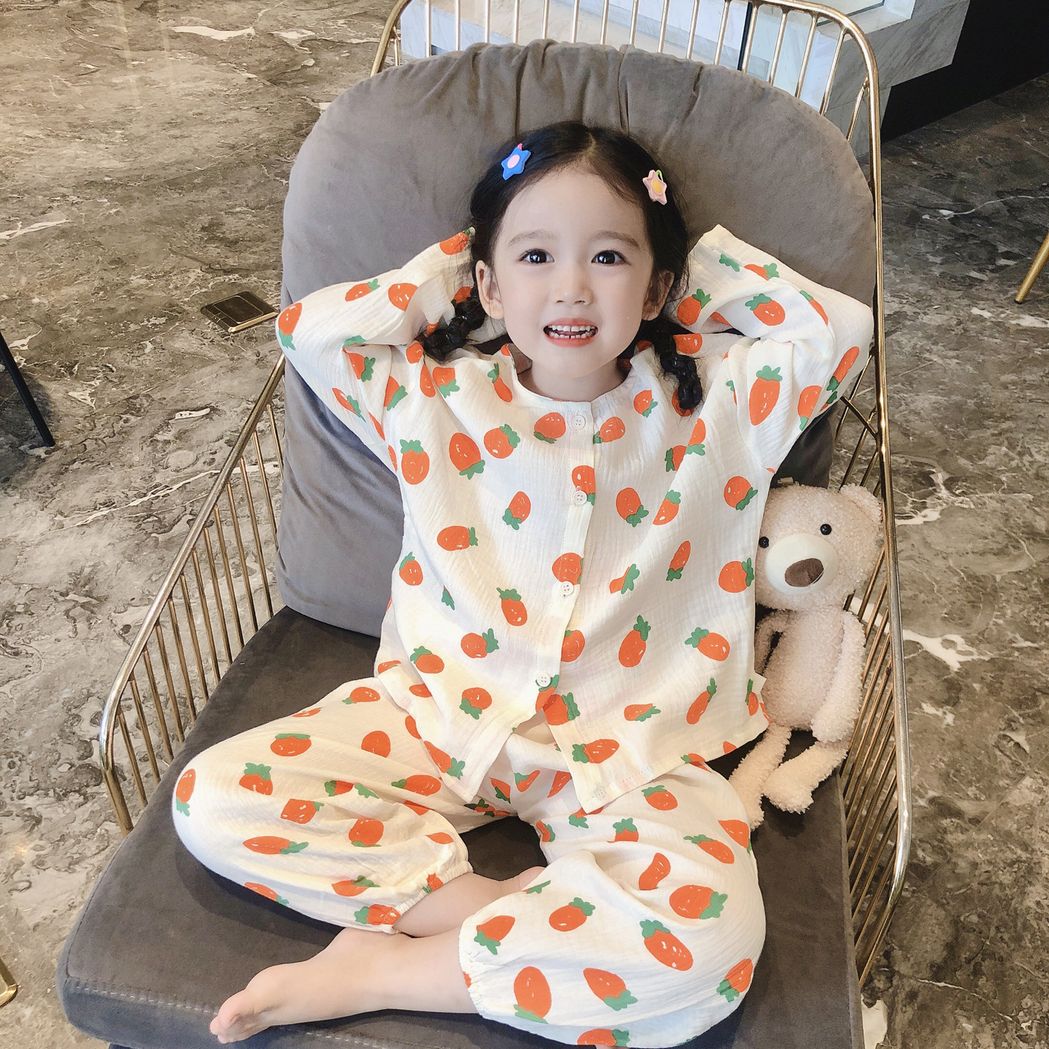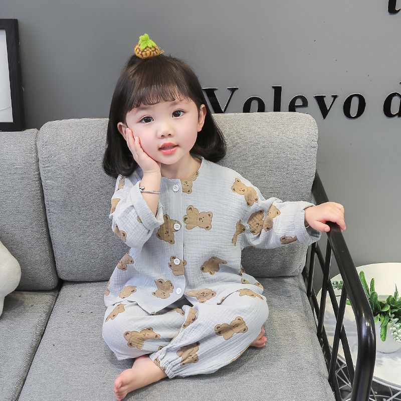 【亲子款34.9/套起】80-180码夏季A类儿童绉纱家居服套装亲子棉纱空调服男孩女童睡衣聚