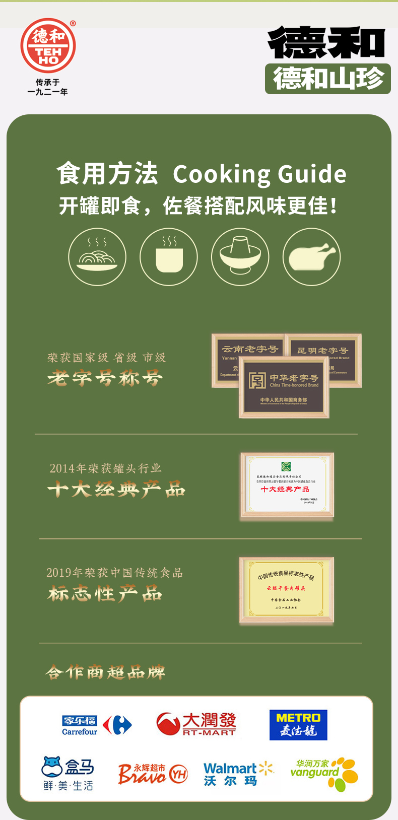 - 昆明德和罐头厂是中国最早开始生产制造罐头的企业之一,至今已有九十八年的悠久历史,现已形成以罐头食品为主,腌腊制品、糕点月饼等为辅的云南省规模最大和最具影响力综合食品制造企业,奠定了云南罐头行业的基石。