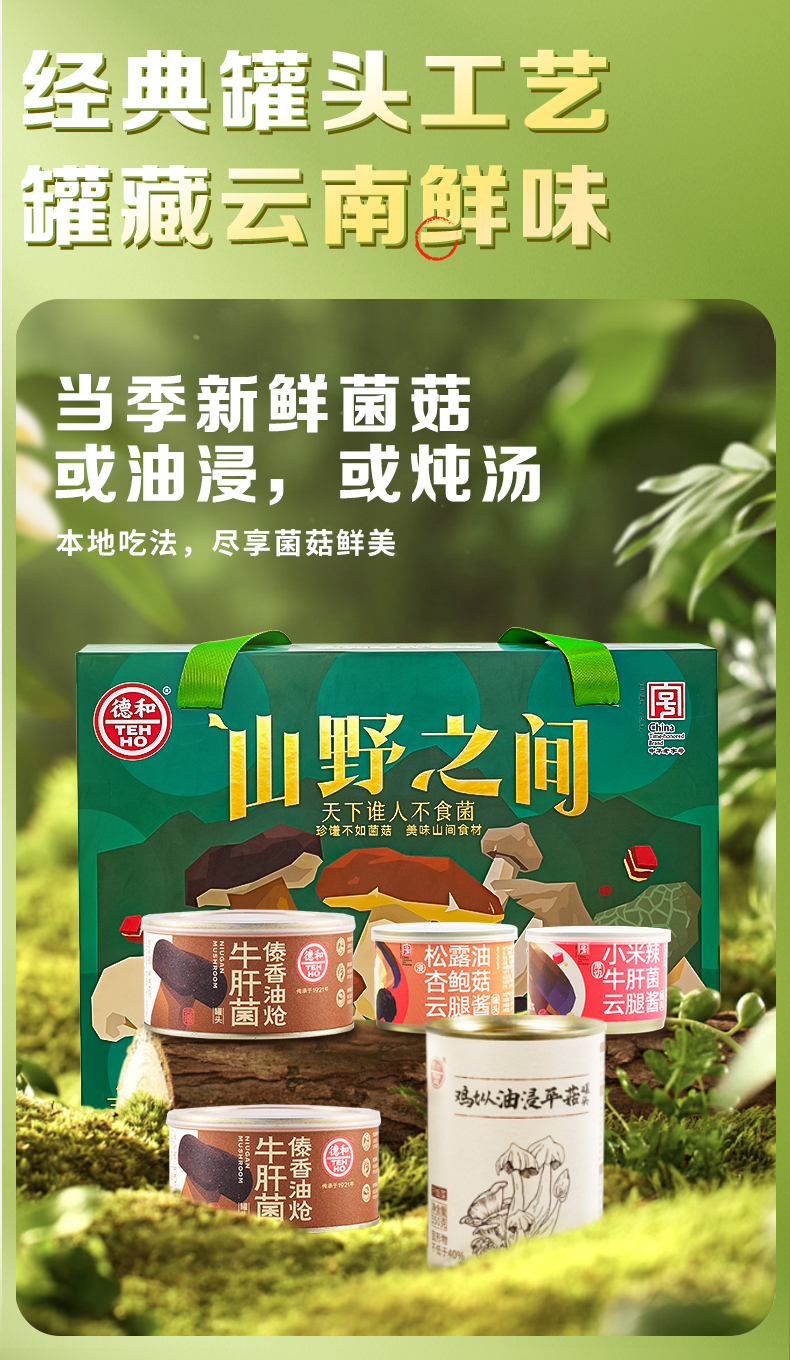 德和山野之间 云南菌菇礼盒 油炝牛肝菌 鸡枞油浸平菇 牛肝菌云腿酱 杏鲍菇酱 玫瑰花酱 云南特产#云南菌子