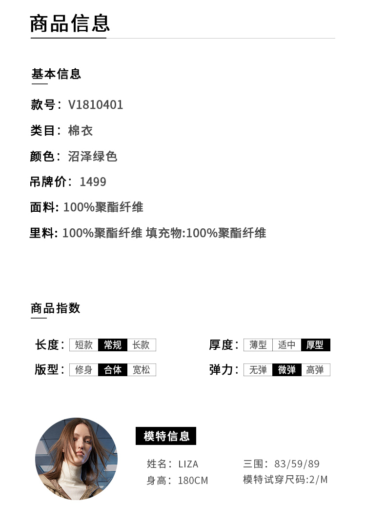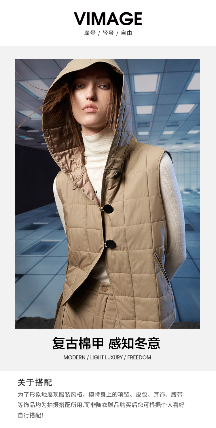 VIMAGE纬漫纪冬季新款百搭修身显瘦连帽外套棉娄V1810401