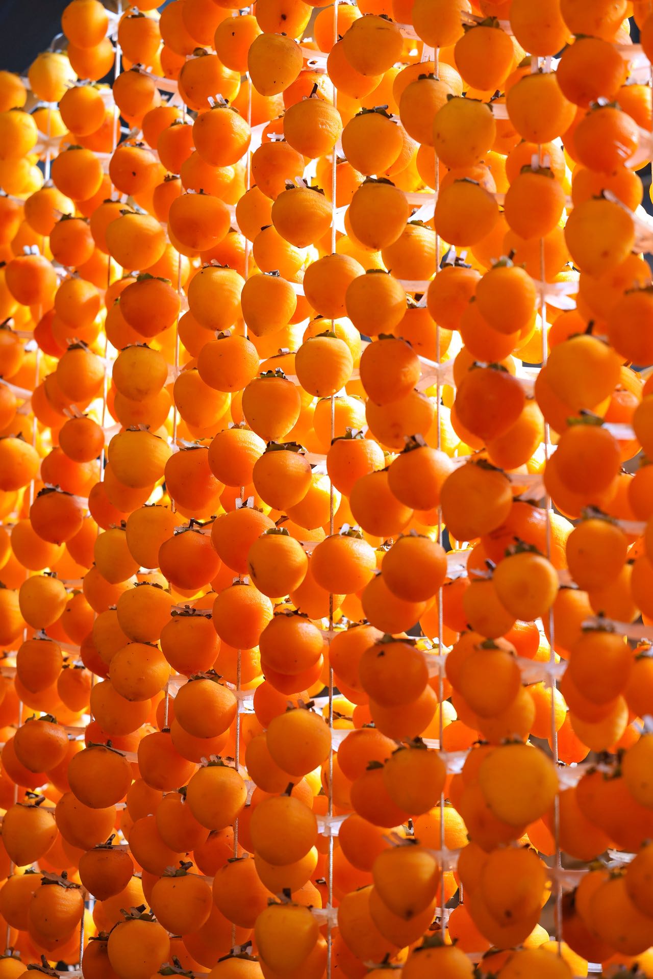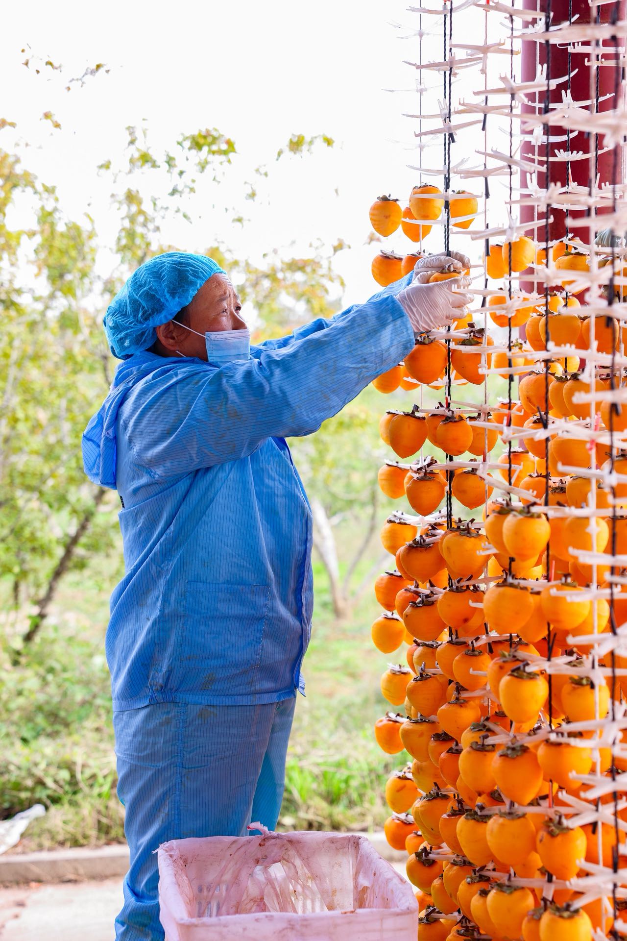 冰柿制作可谓传统与现代工艺的结合。通常会经历选果、清洗、削皮、悬挂、低温烘烤、极速冷冻等环节。关键在于接下来的“智能温控脱水”等现代工艺。通过精准控制温湿度,能更好地促进柿果糖化和脱涩,这也是冰柿相比传统柿饼能保留更多水分,形成莹润软糯口感的核心。大约 4斤鲜柿子才能出1斤冰柿,浓缩了精华。