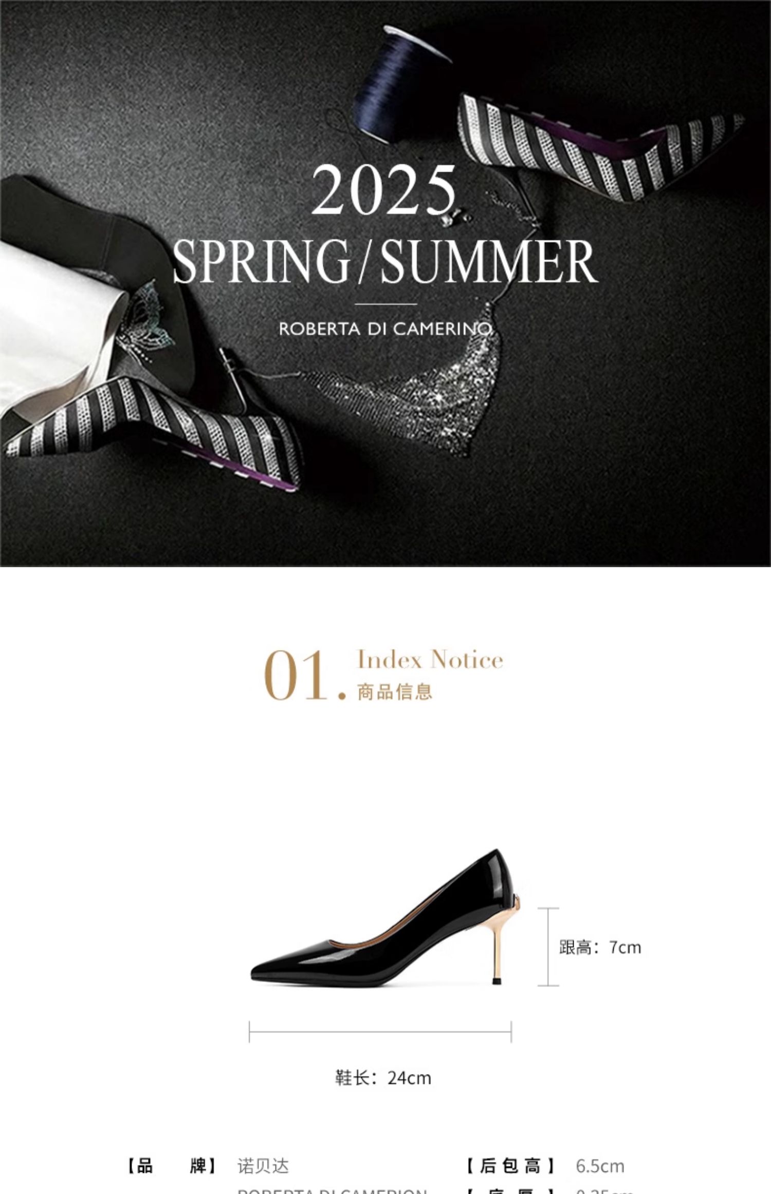 Roberta诺贝达 2025春季新款通勤百搭真皮尖头高跟鞋职业女单鞋RS257206