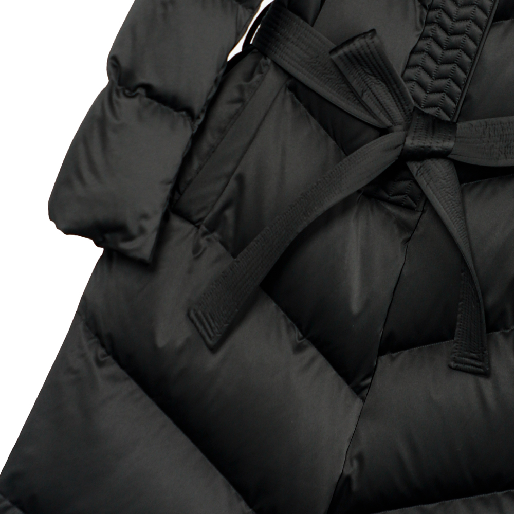 面料:7%桑蚕丝 93%聚酯纤维 里料1:100%聚酯纤维 里料2:100%聚酯纤维 配料:92%莱赛尔纤维 8%氨纶 填充物:霍尔多巴吉95白鹅绒(绒子含量91%)以上 充绒量:M码,244g;L码,253g;XL码,265g;XXL码,273g