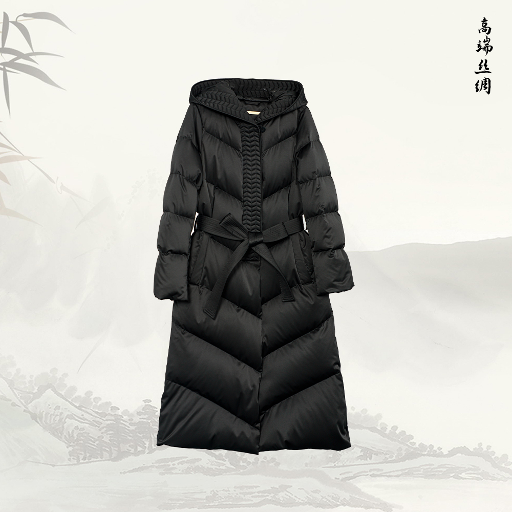 NANSONGSILK/NS气质保暖通勤连帽经典过膝中长款鹅绒服547053南宋