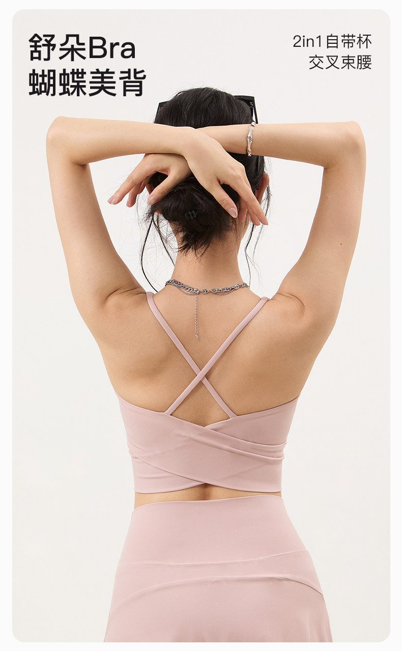【3~5天发货】跃牌【美度空间】系列 双X交叉围裹美背瑜伽内衣女带胸垫亲肤裸感健身背心WX62017