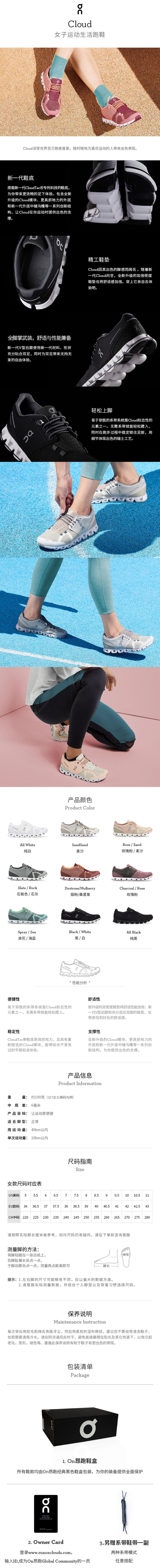 On昂跑 全天候轻量透气舒适女款运动跑步鞋 Cloud 跑马拉松比赛越野跑步耐力跑训练慢跑健身徒步运动