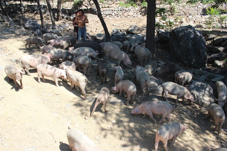 待猪长到200斤左右,会补饲小吴生态种植的非转基因玉米育肥,等待出栏。除了吃,这些猪的日常便是穿梭山野,泥地打滚,在干净的山泉水中泡澡,在树荫下吹风闭目养神,自由自在,幸福指数高。