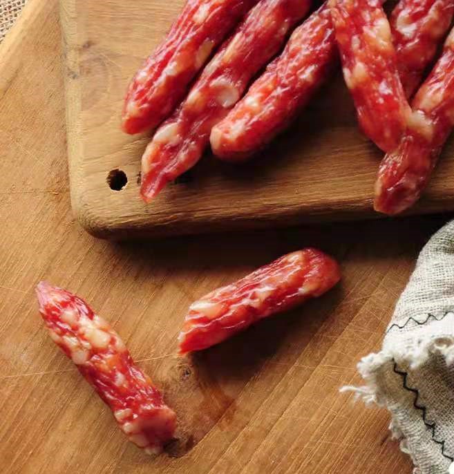 1、腊肠制作不添加任何色素和食品添加剂,人工灌装,腊肠饱满程度、同等重量的条数、颜色、口味等会有批次差异,介意慎拍!