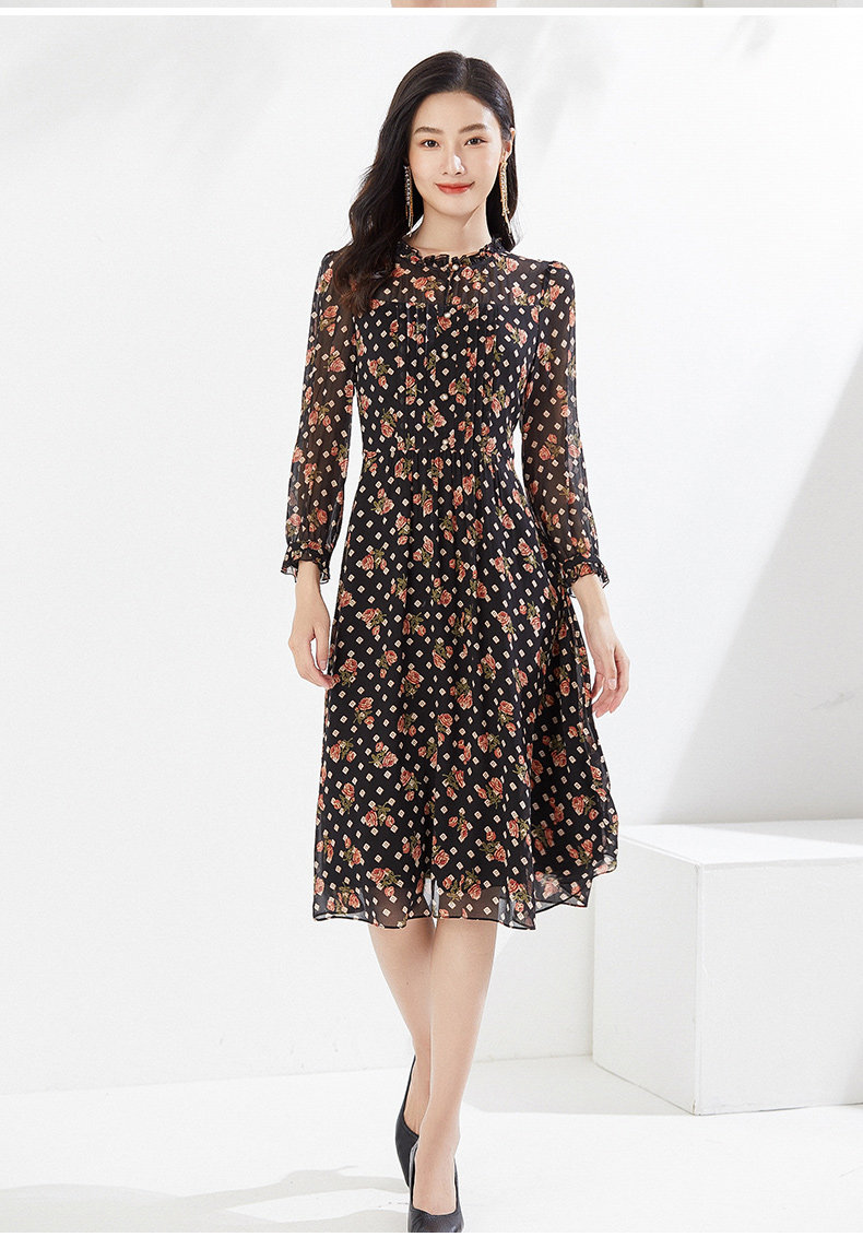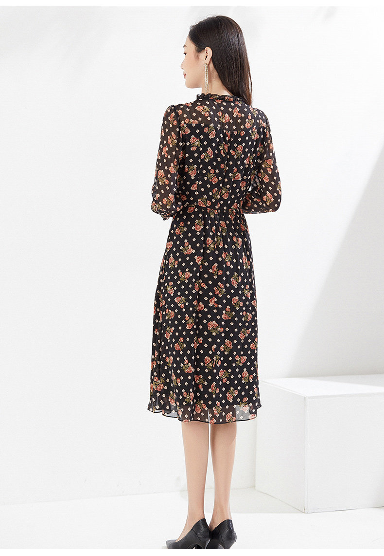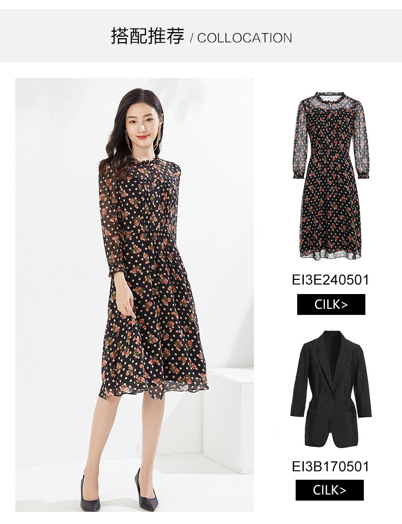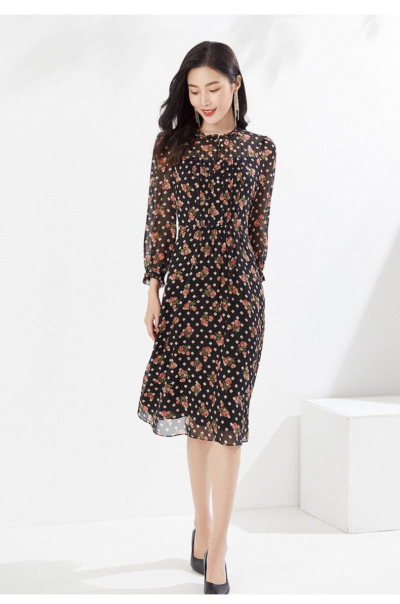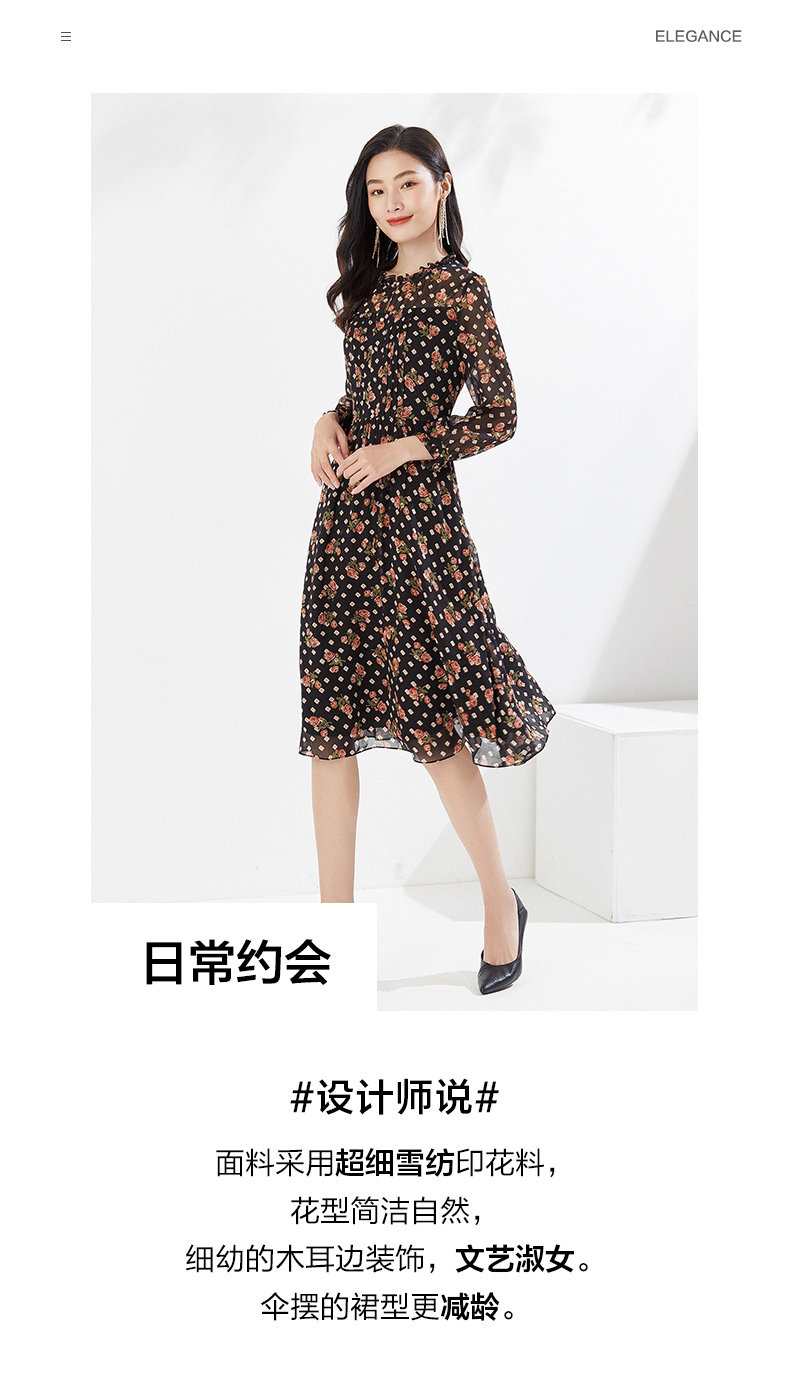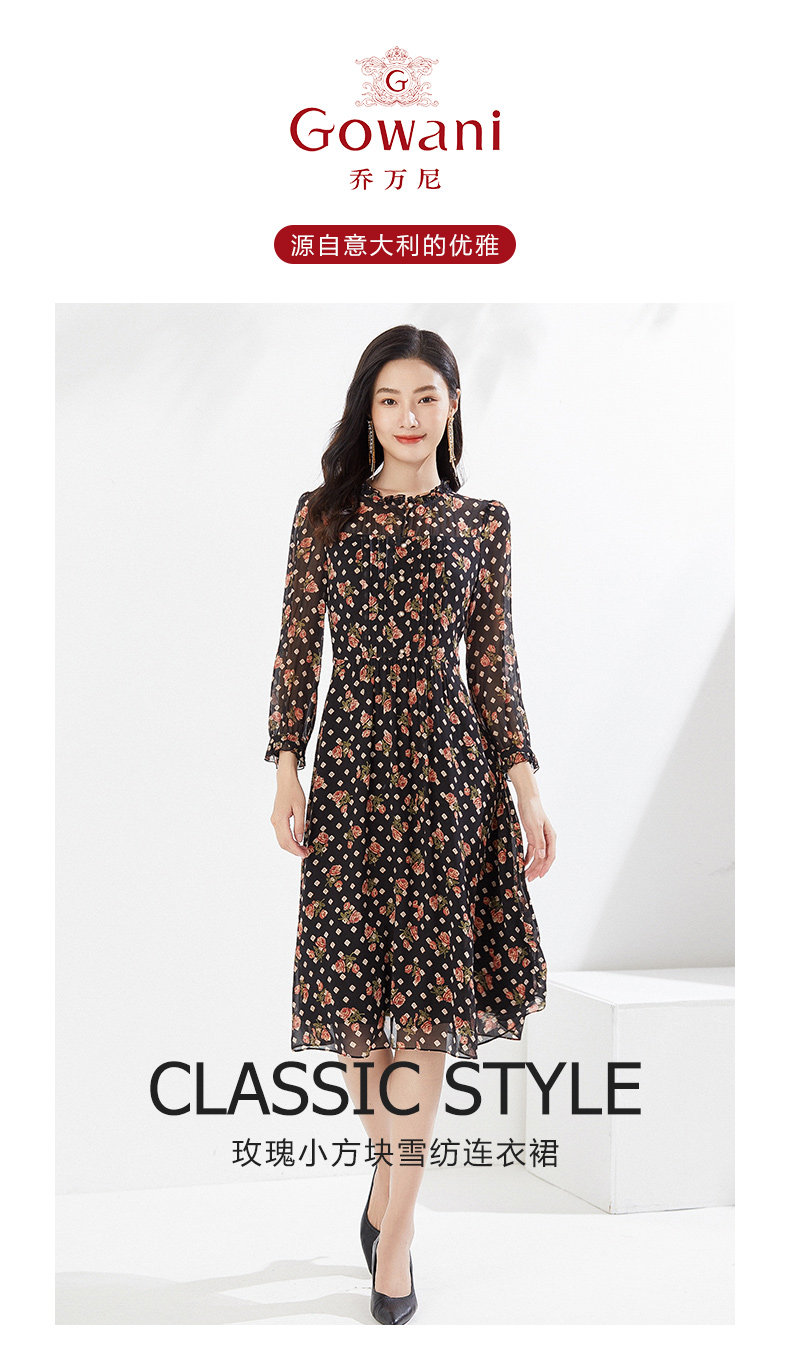 乔万尼碎花连衣裙早春新品长袖雪纺印花长裙EI3E240