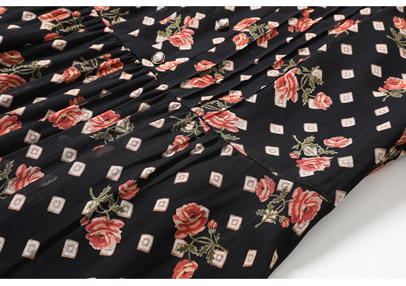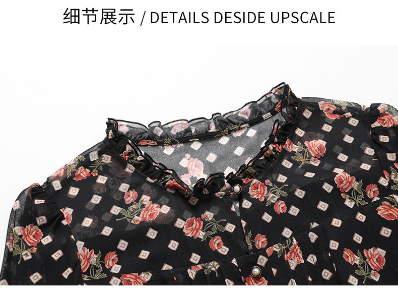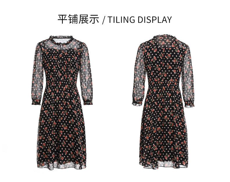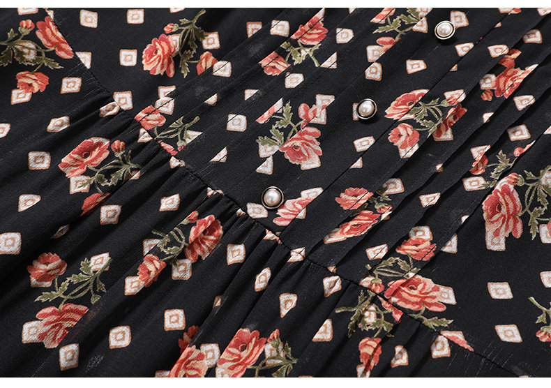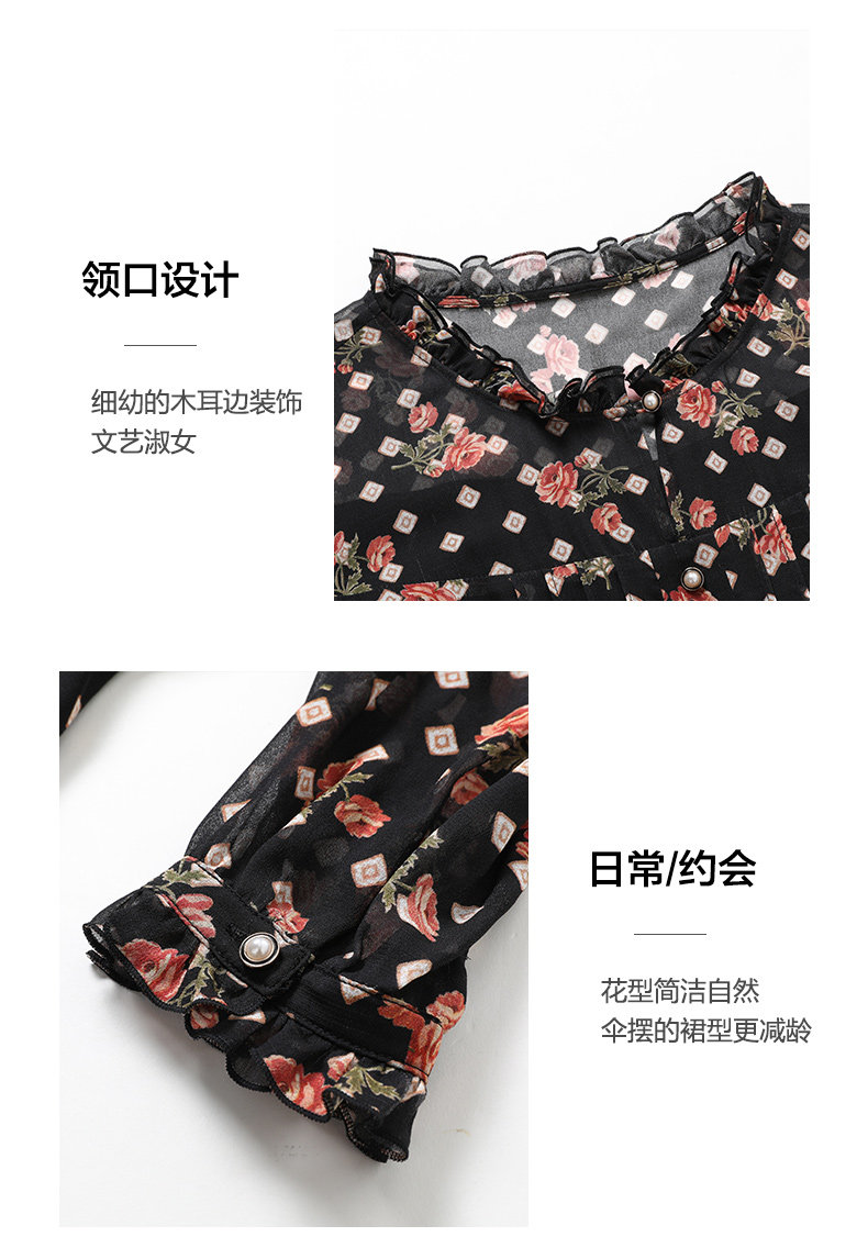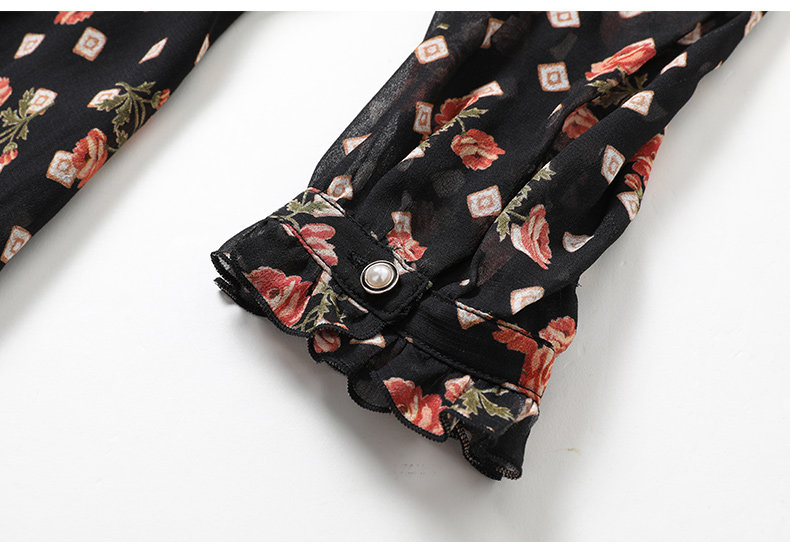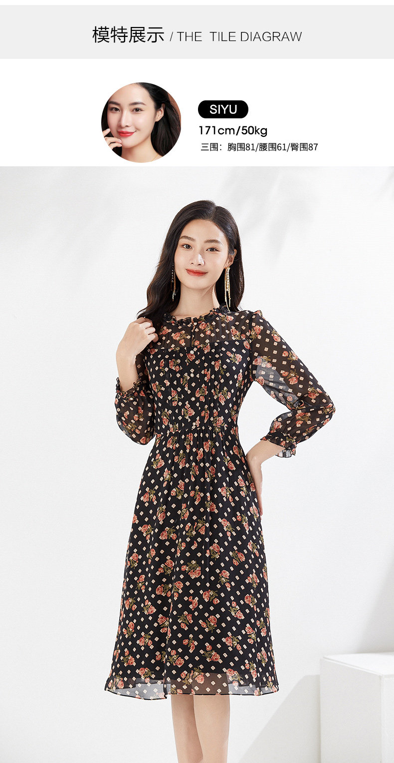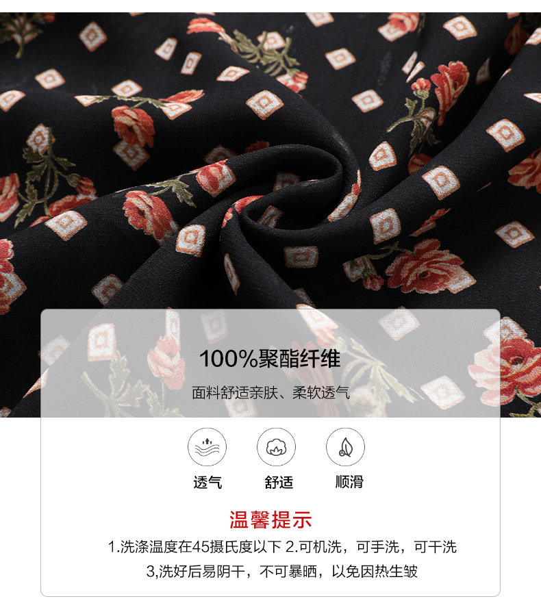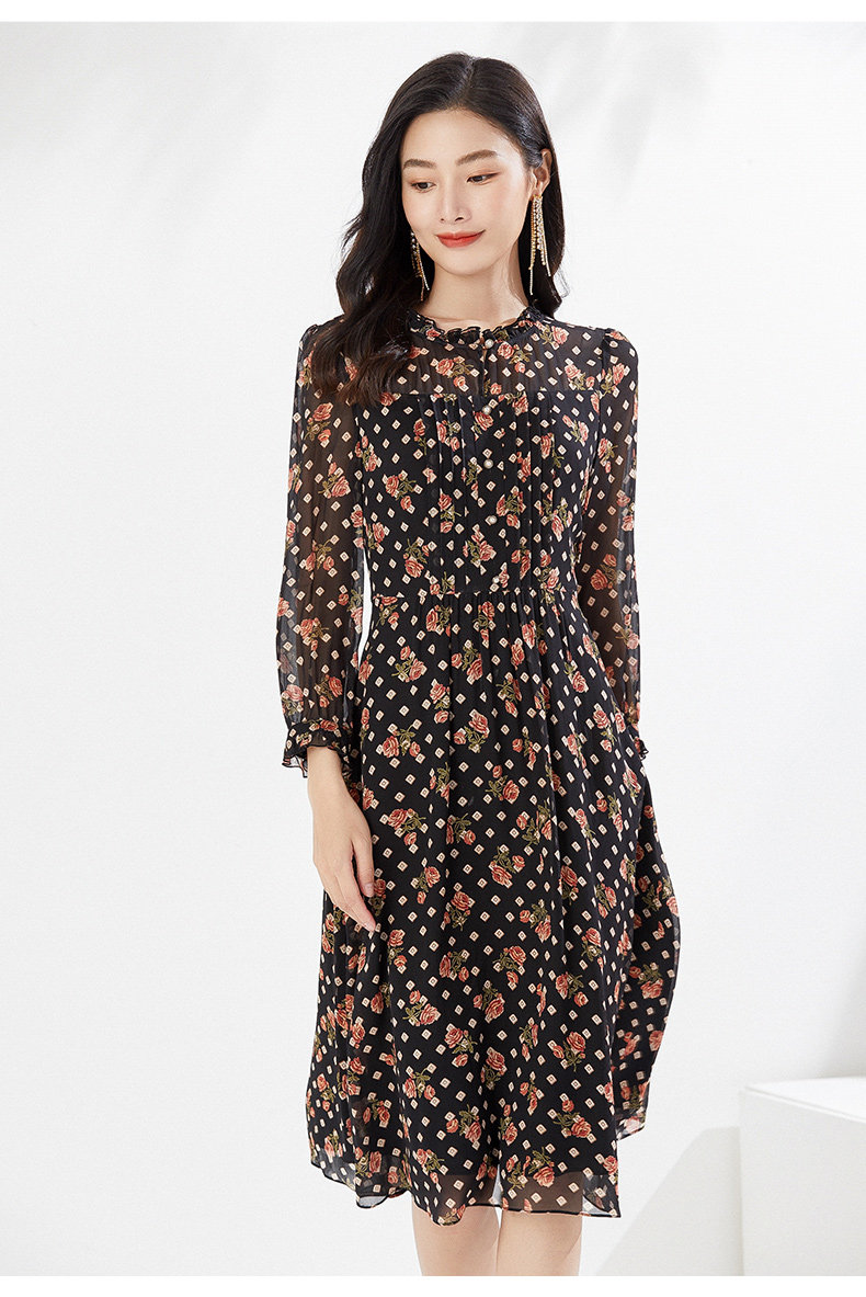 乔万尼碎花连衣裙早春新品长袖雪纺印花长裙EI3E240