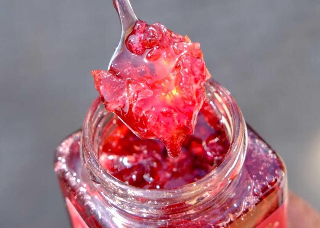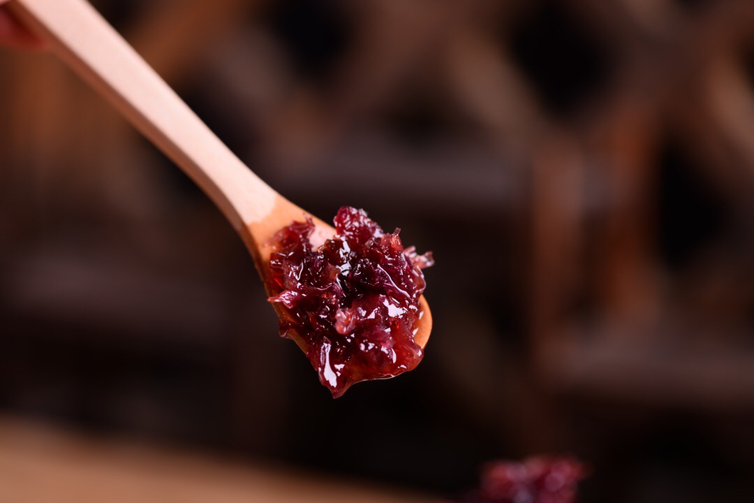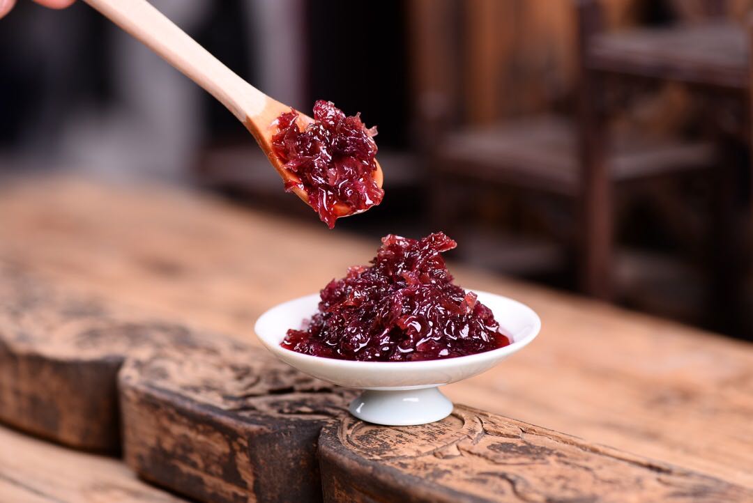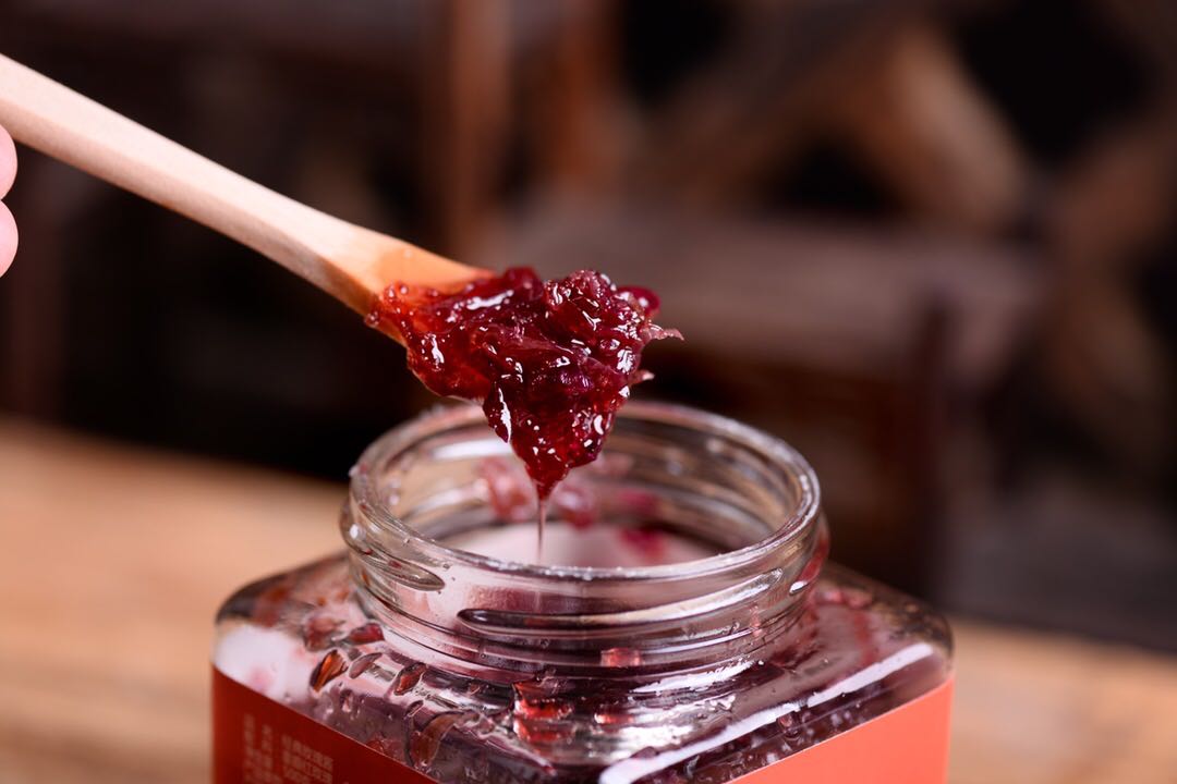 清透粘稠花酱中能看到花瓣原材堆叠,