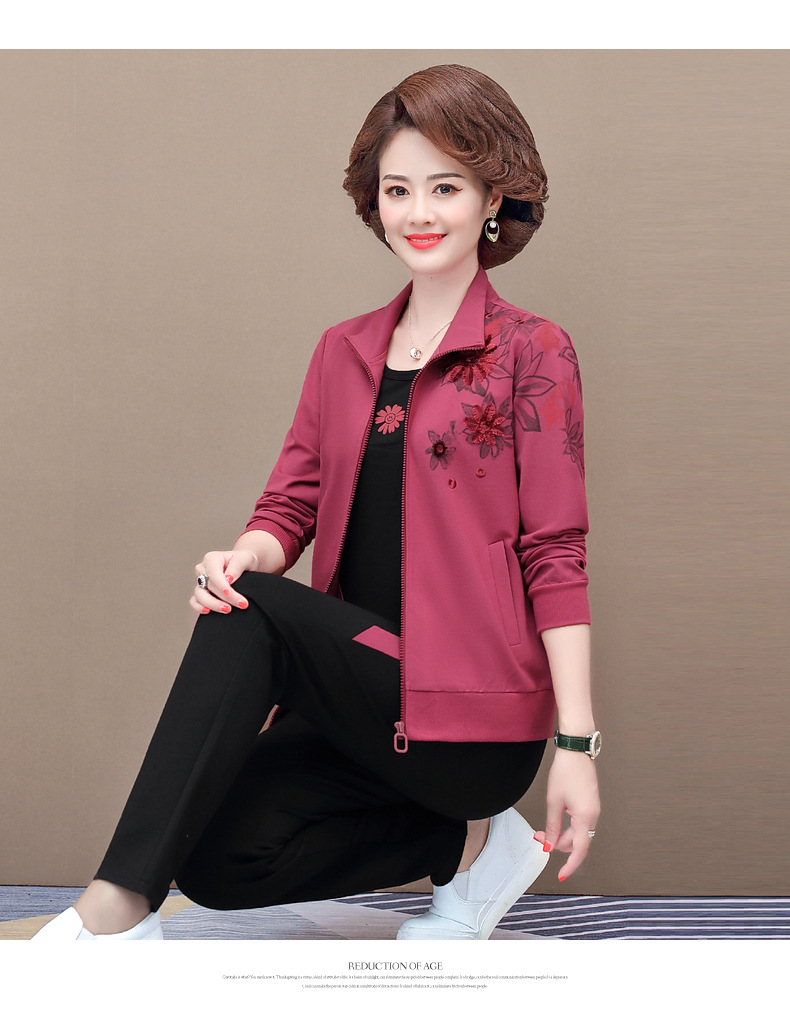 YSM-125P-13214妈妈三件套装春秋洋气减龄运动休闲套装
