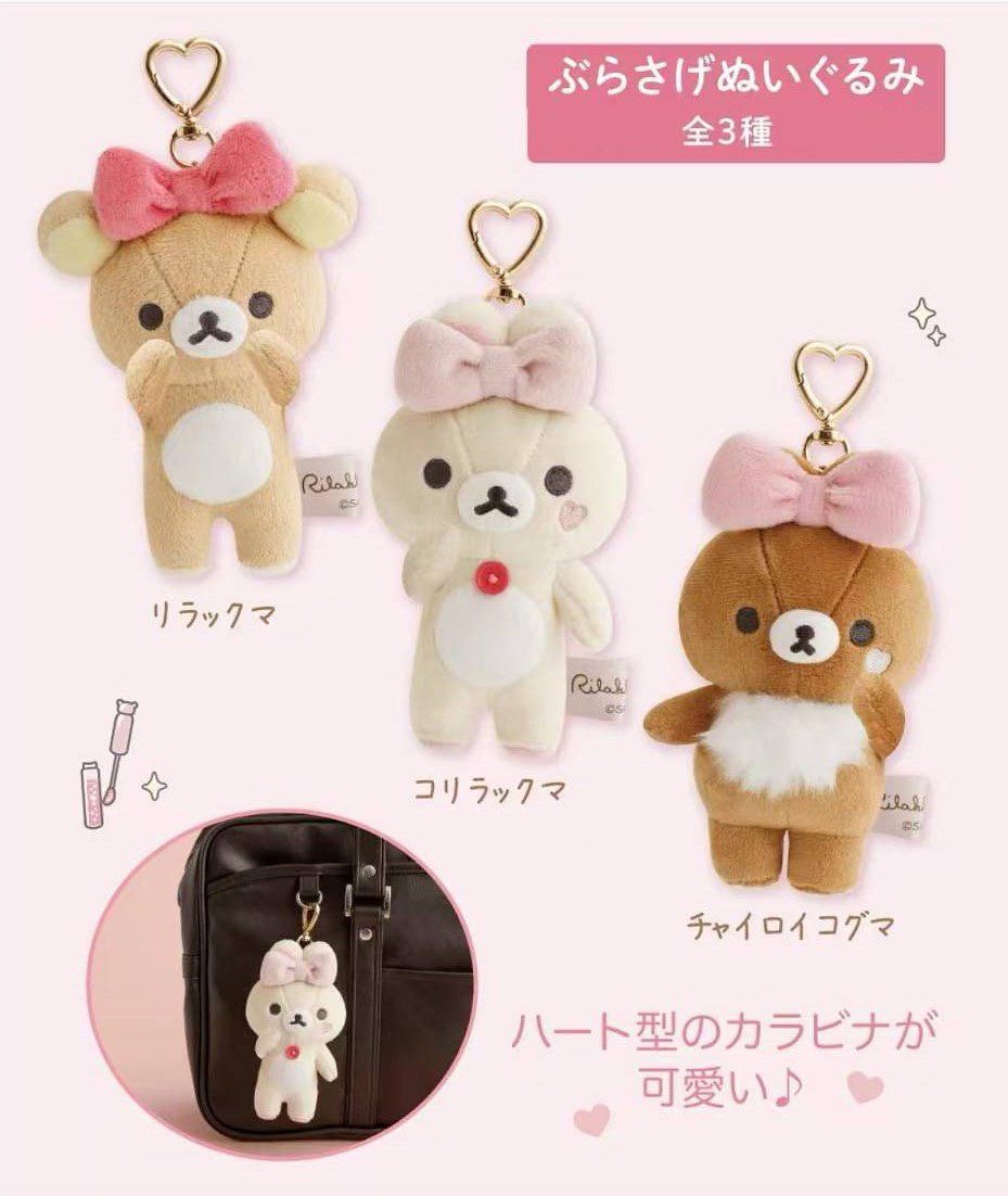 日本SAN-X轻松小熊蝴蝶结装扮系列毛绒玩偶公仔挂件