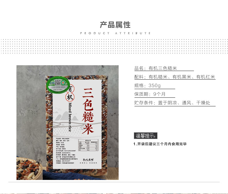 【有机三色糙米】350g|全胚芽有机杂粮|无农药化肥|当季新米|FX【QTT】