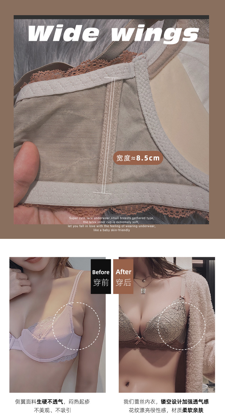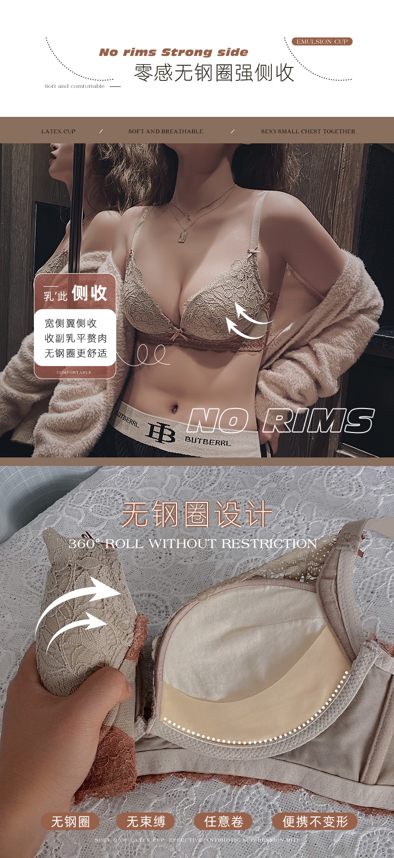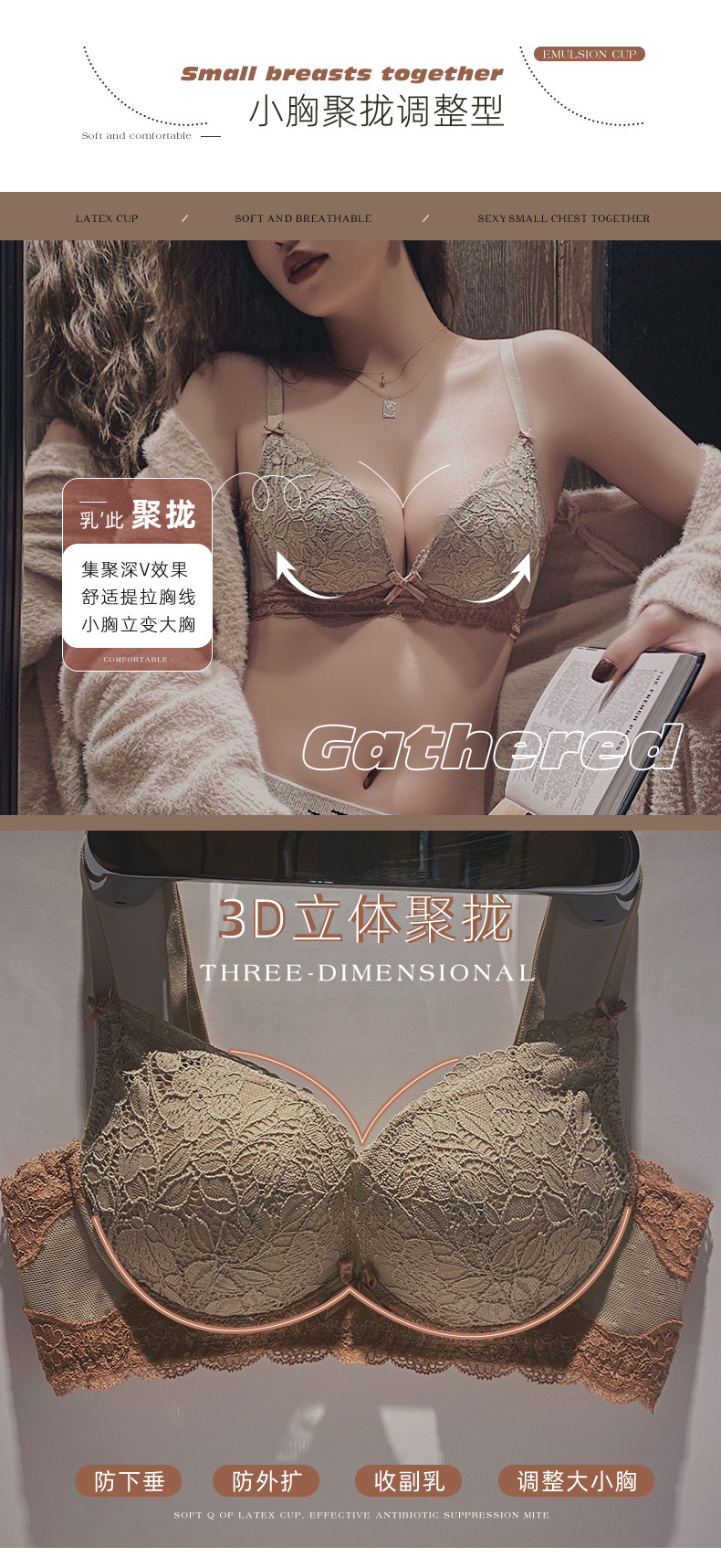 胸罩女聚拢小胸无钢圈文胸调整型收副乳上托加厚乳胶内衣裤套装女