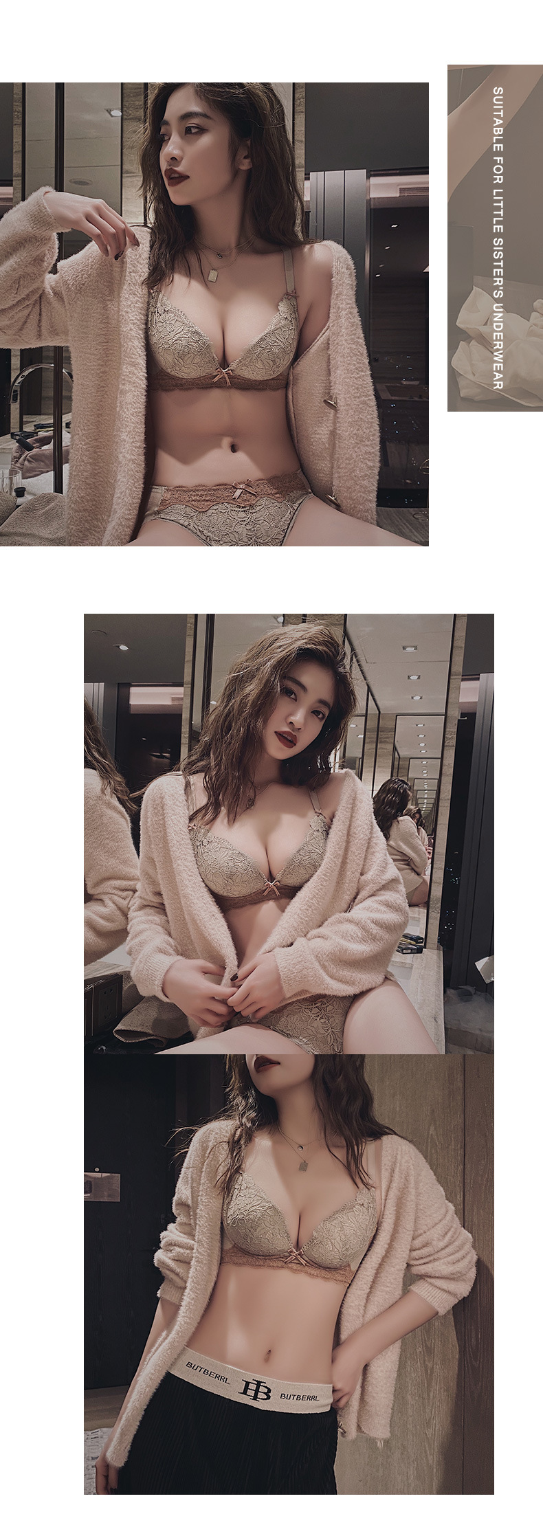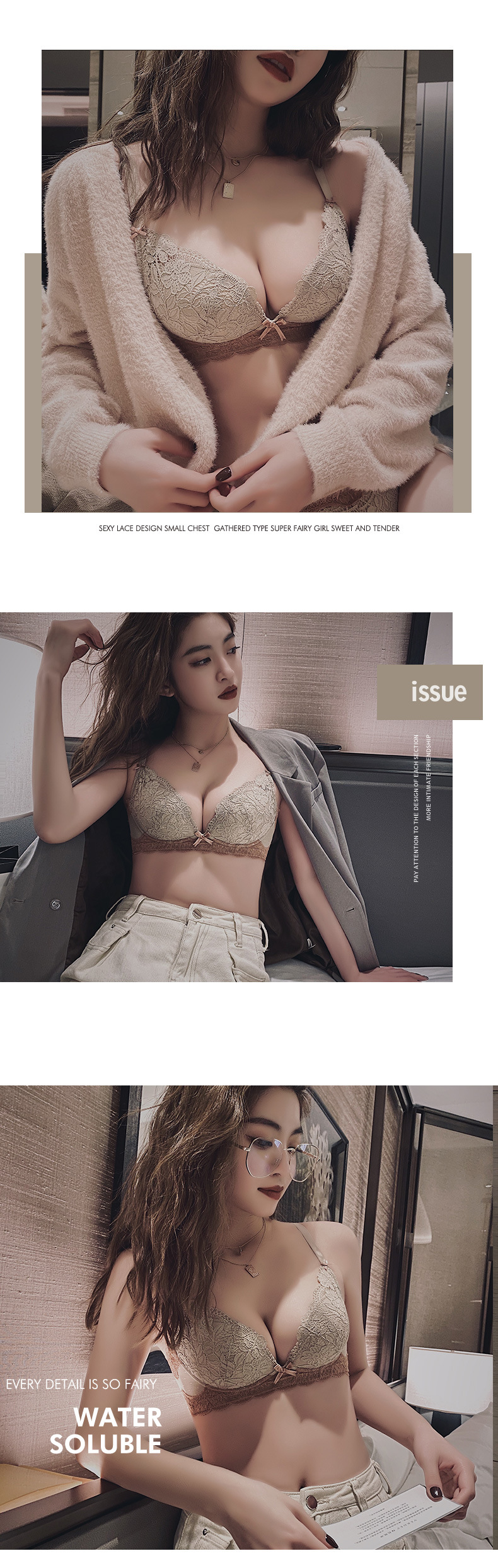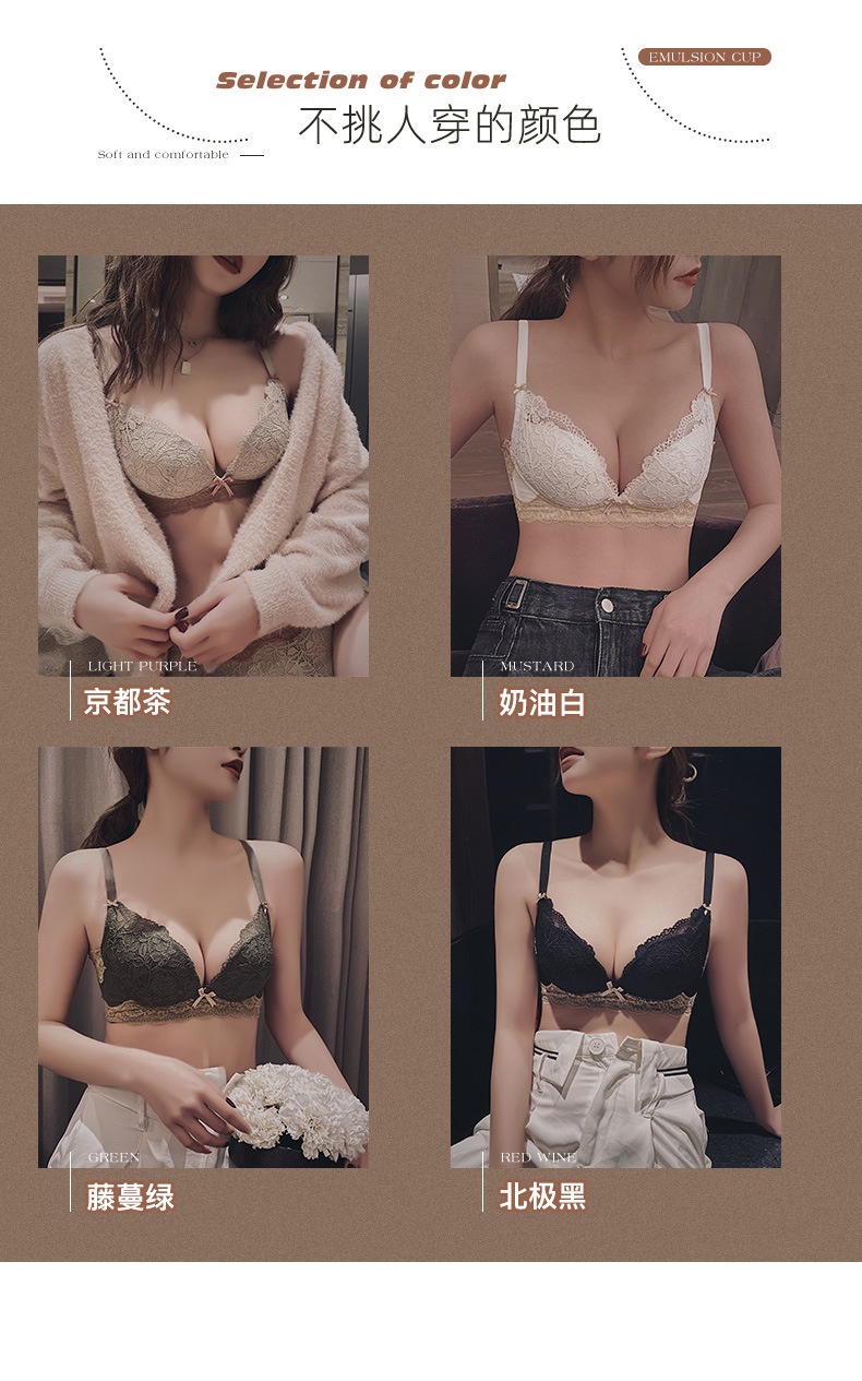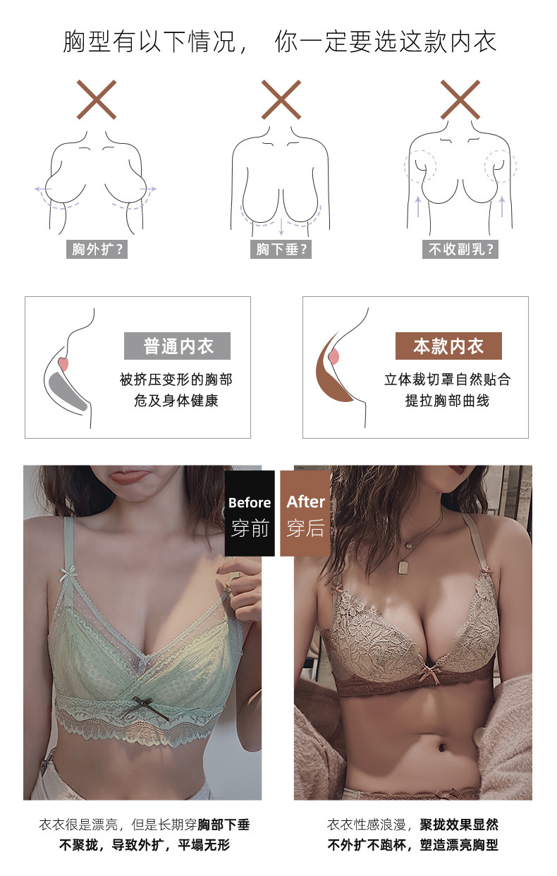 胸罩女聚拢小胸无钢圈文胸调整型收副乳上托加厚乳胶内衣裤套装女