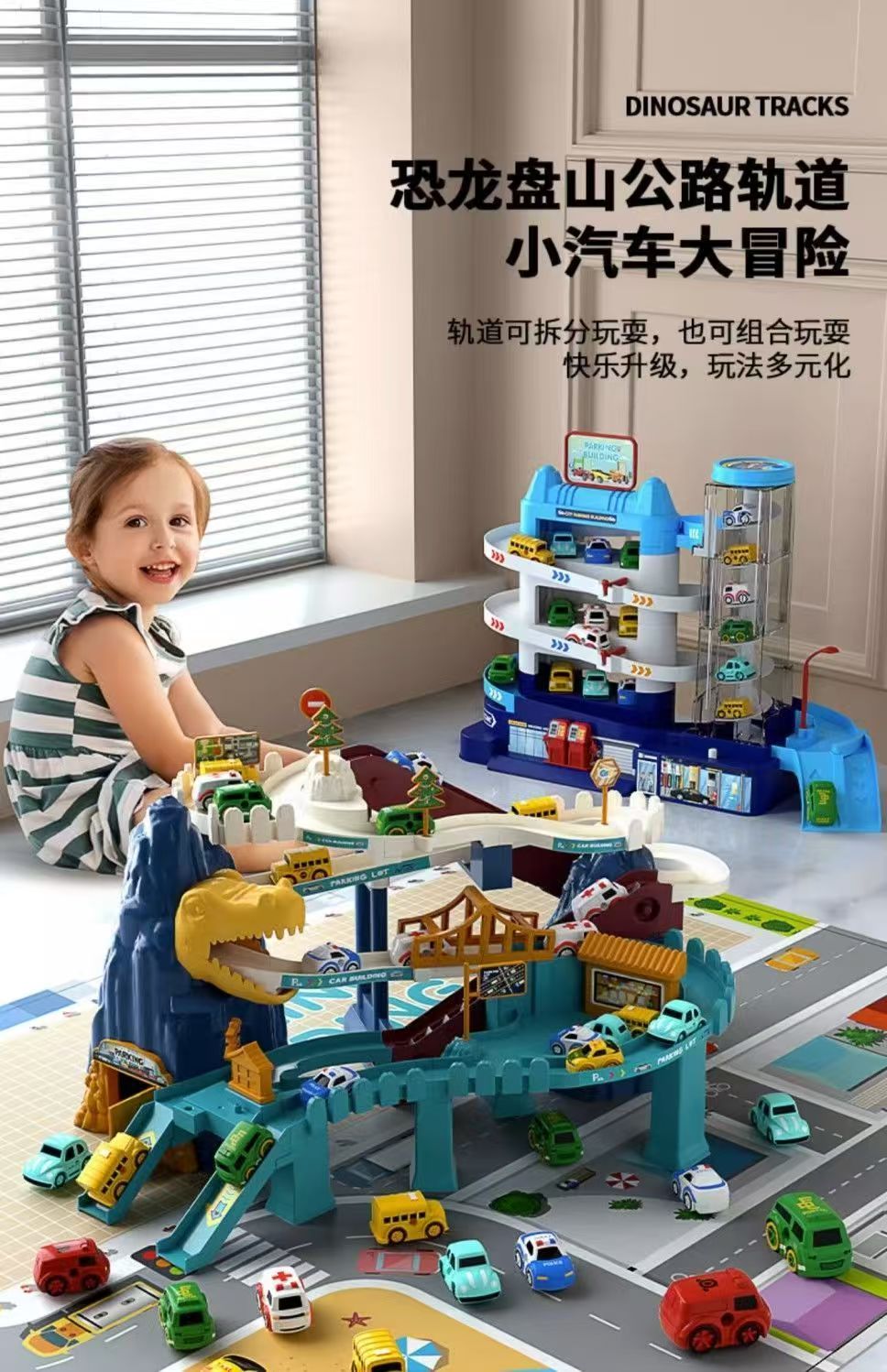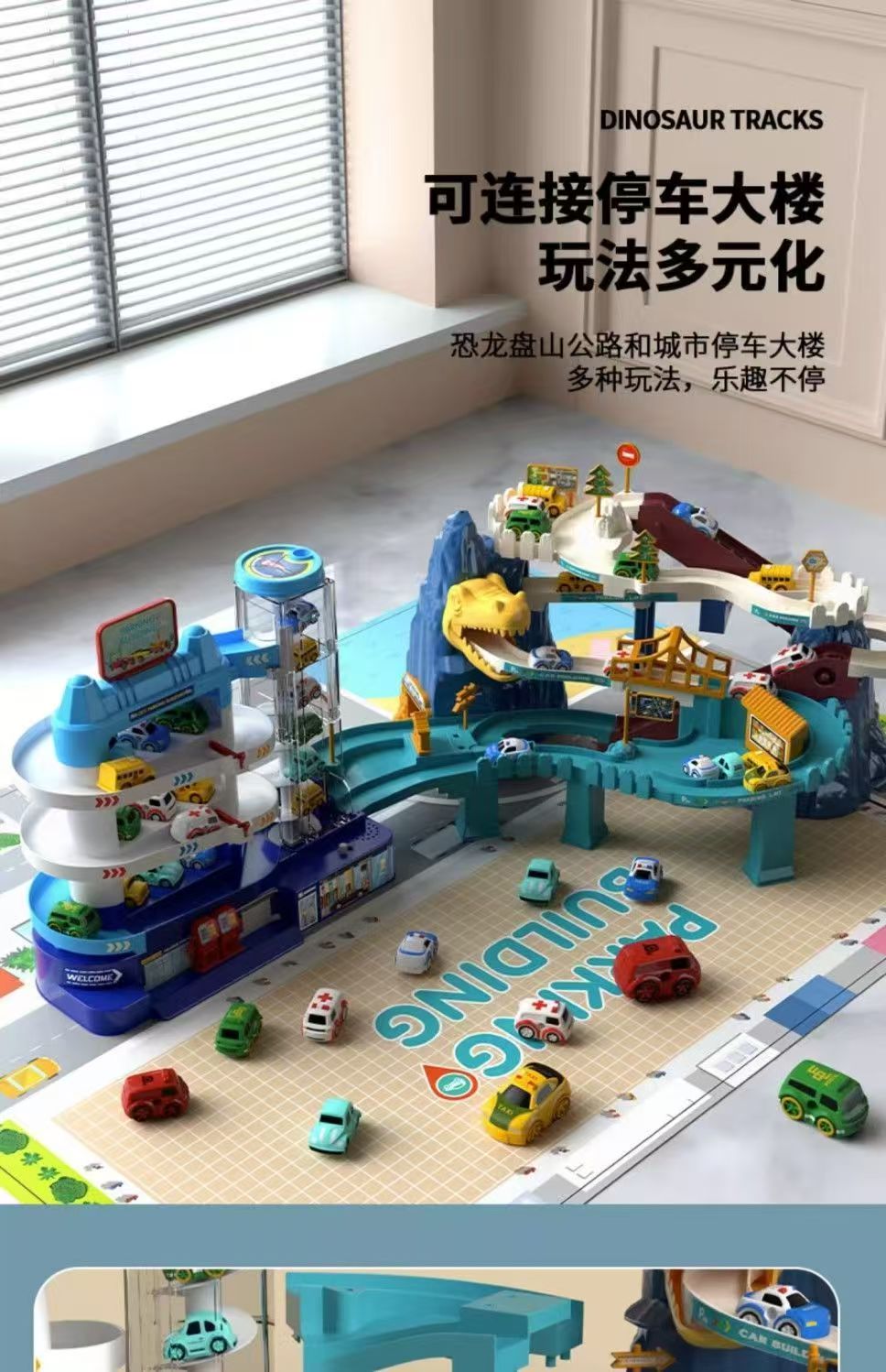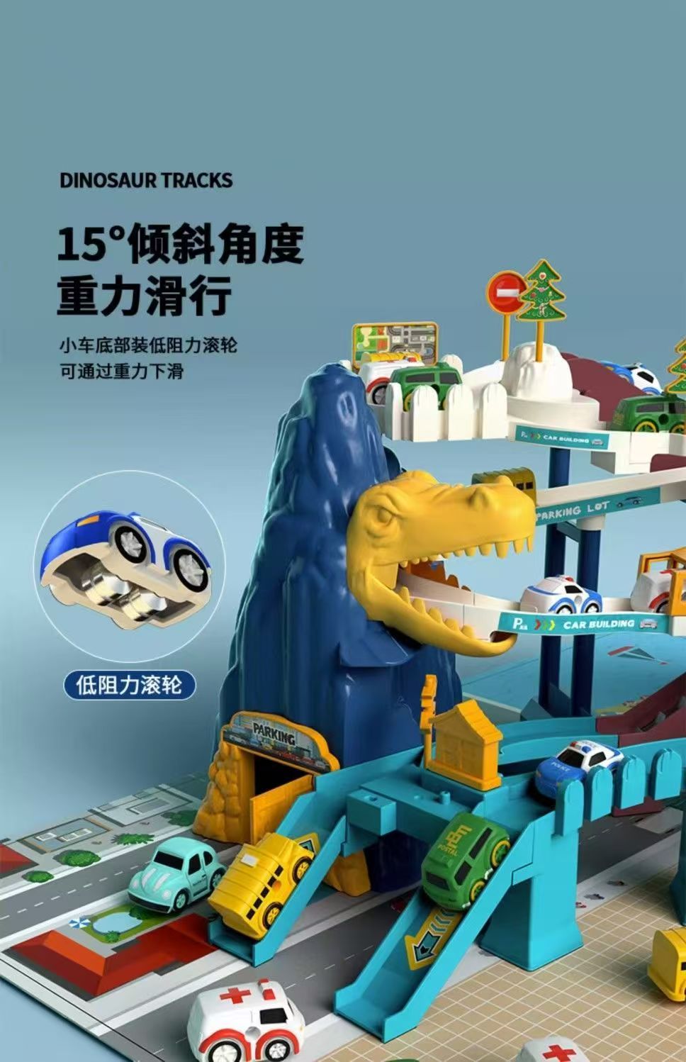 儿童轨道车玩具恐龙盘山公路小火车汽车闯关停车场