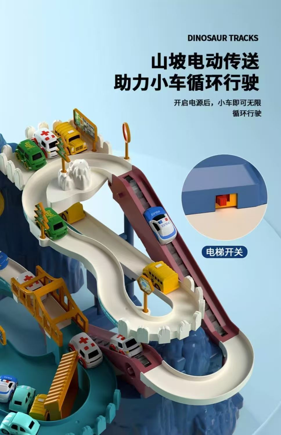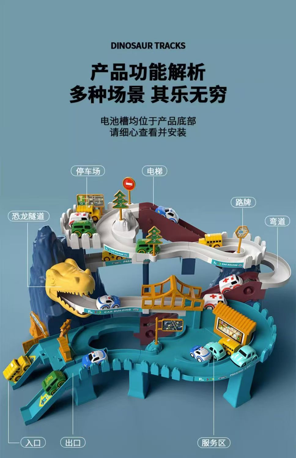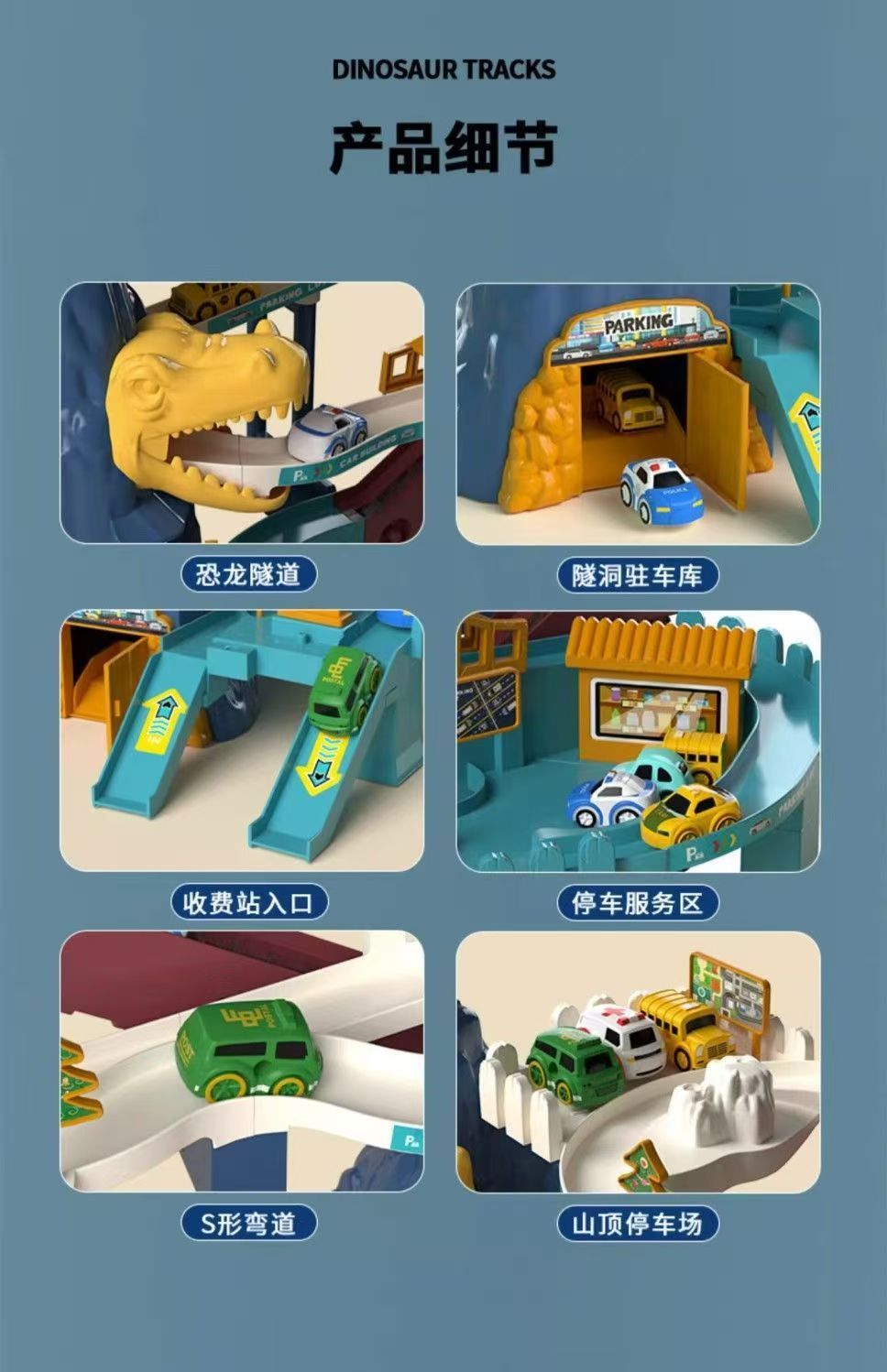 儿童轨道车玩具恐龙盘山公路小火车汽车闯关停车场