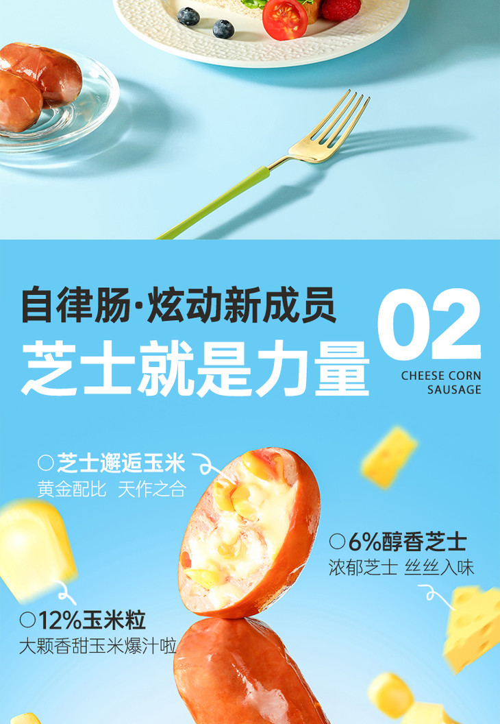 哥本脆皮肉粒肠 墨鱼/五蔬/香辣/奥尔良/胡椒/玉米/墨鱼味 40g/粒