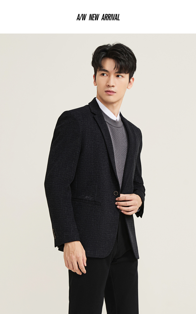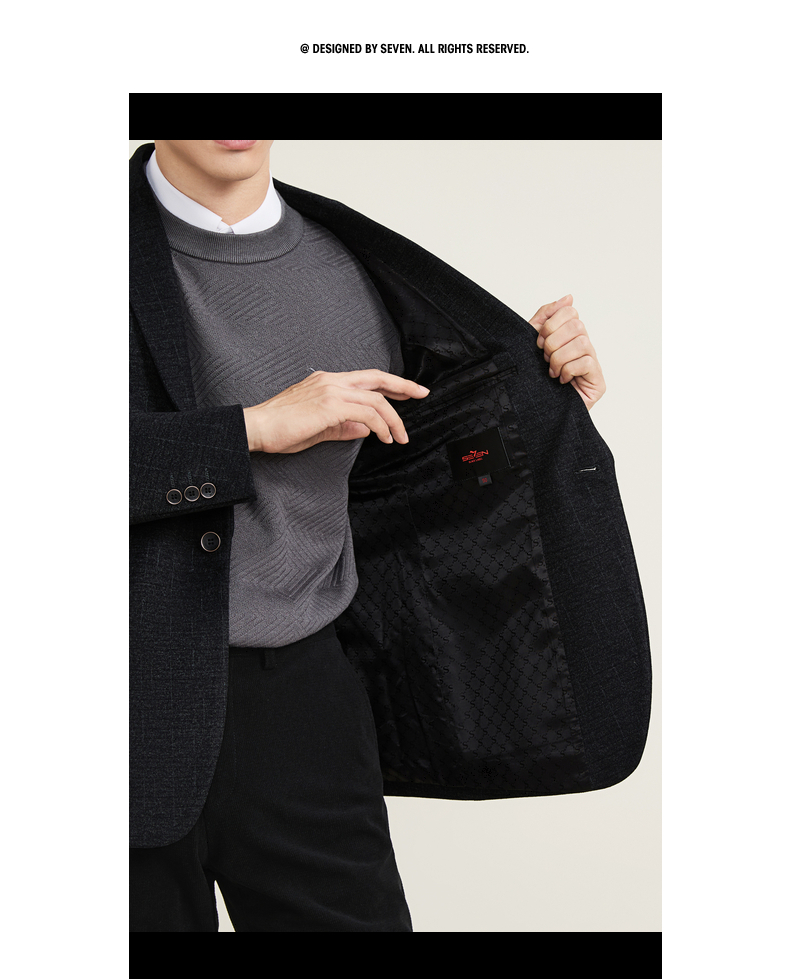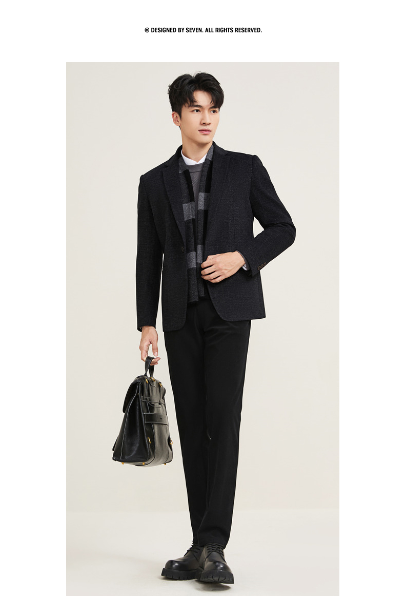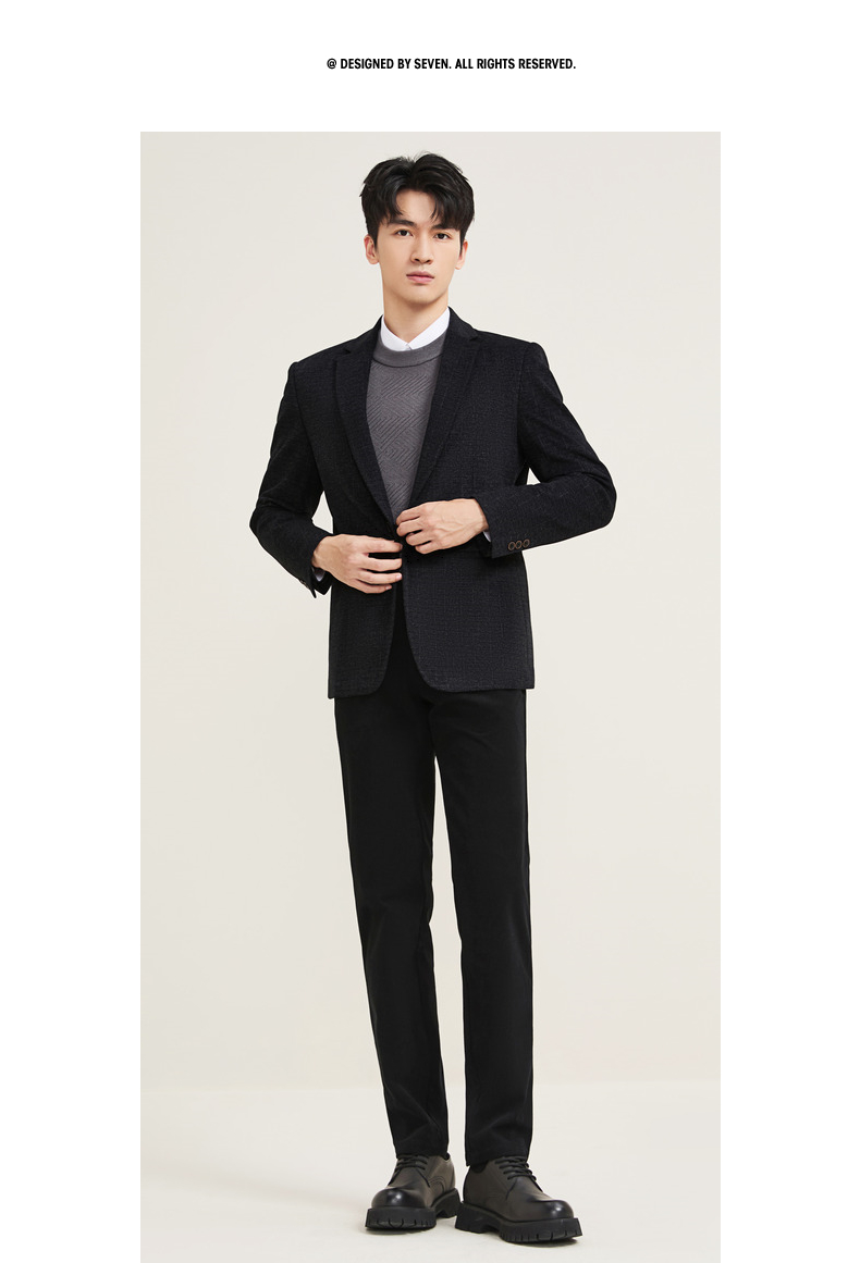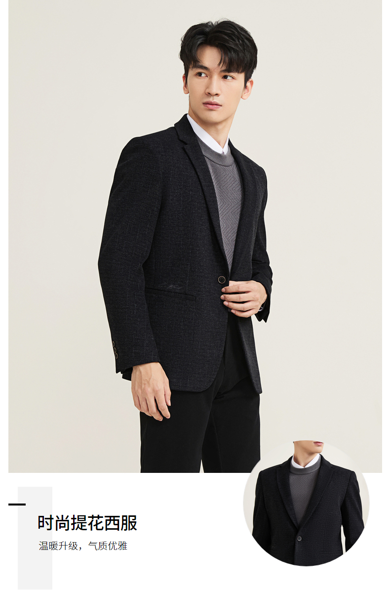 【休闲单西】柒牌西服2025秋冬新品修身修身提花一粒扣西装上衣129C70210