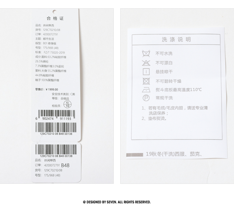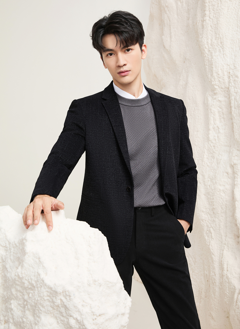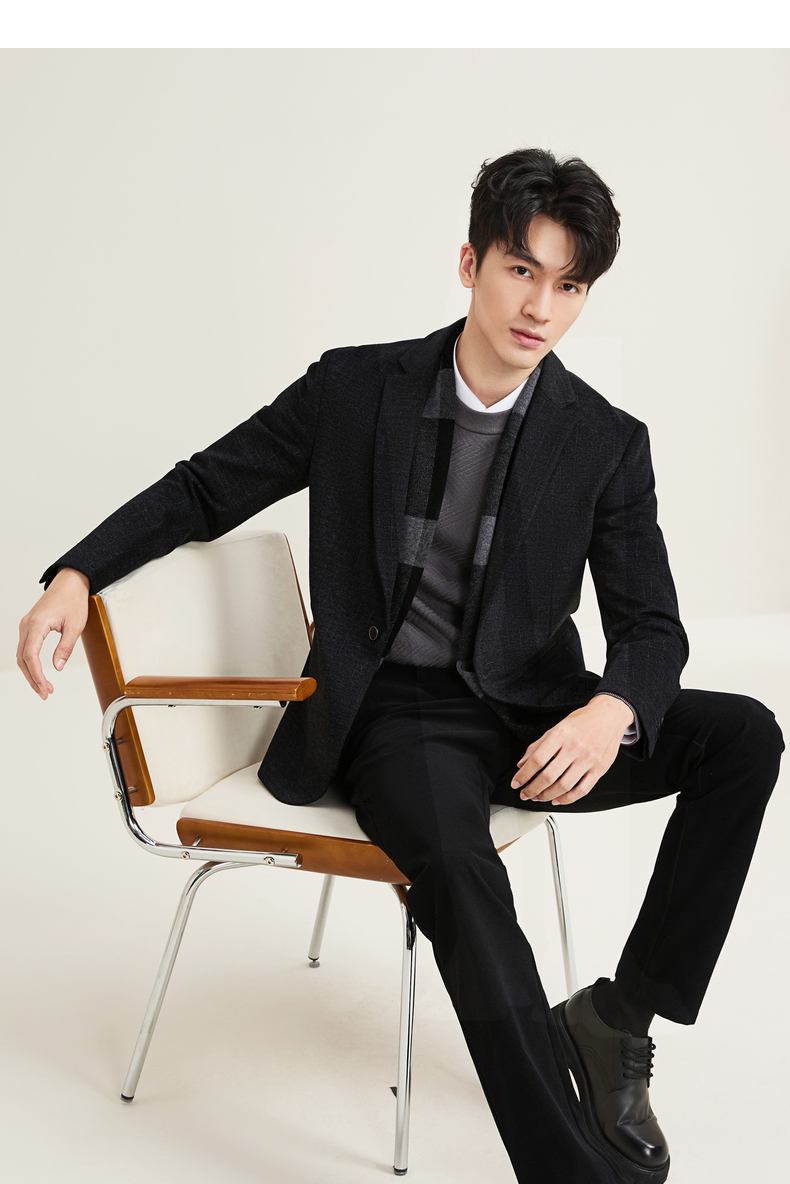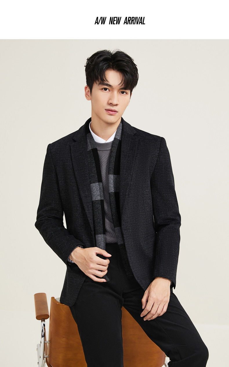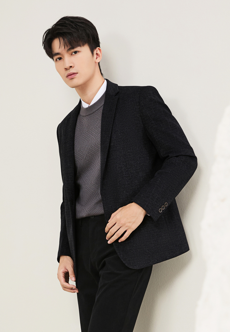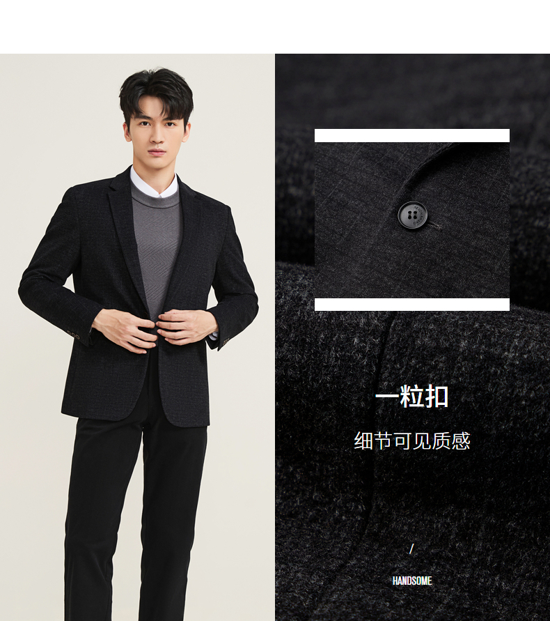 【休闲单西】柒牌西服2025秋冬新品修身修身提花一粒扣西装上衣129C70210