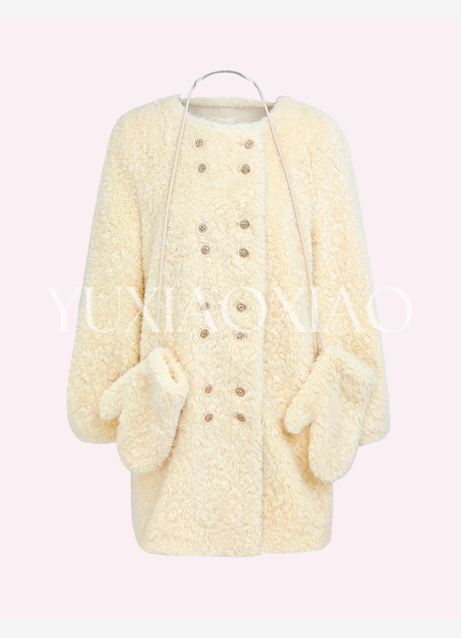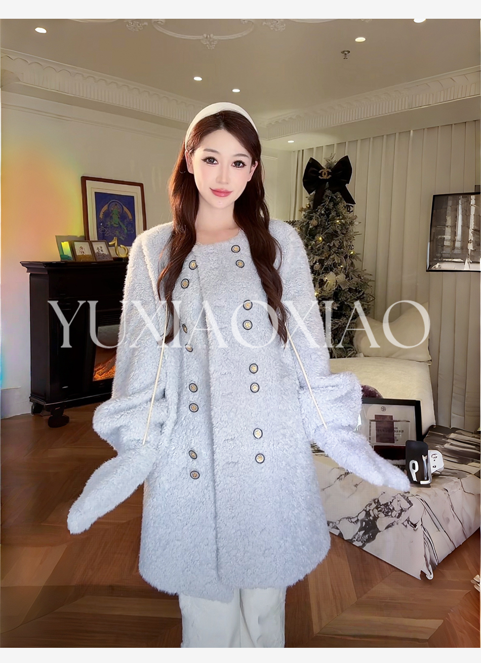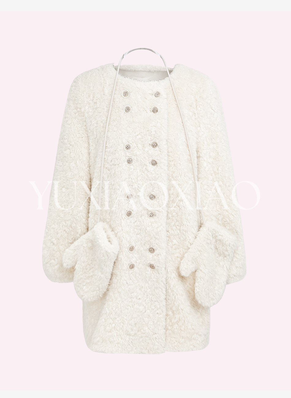 余潇潇【初雪密语】精致高级感双排金属扣圆领中长款外套配本布手套