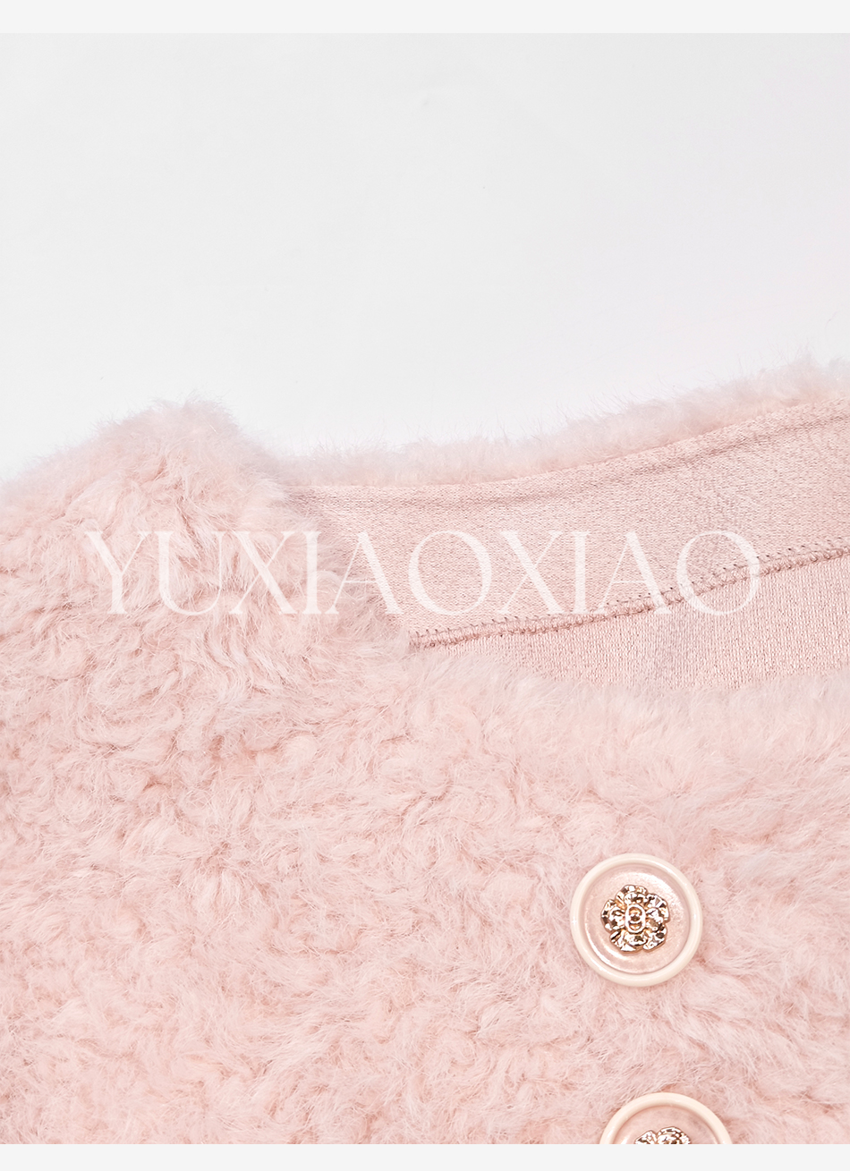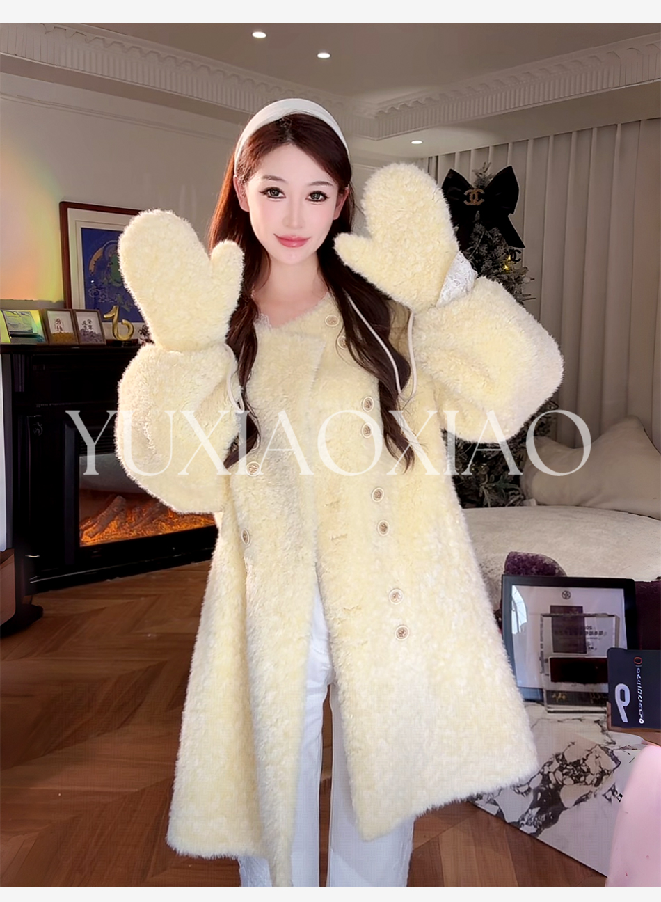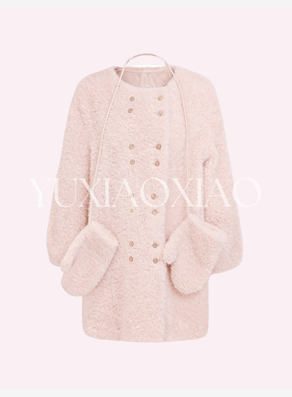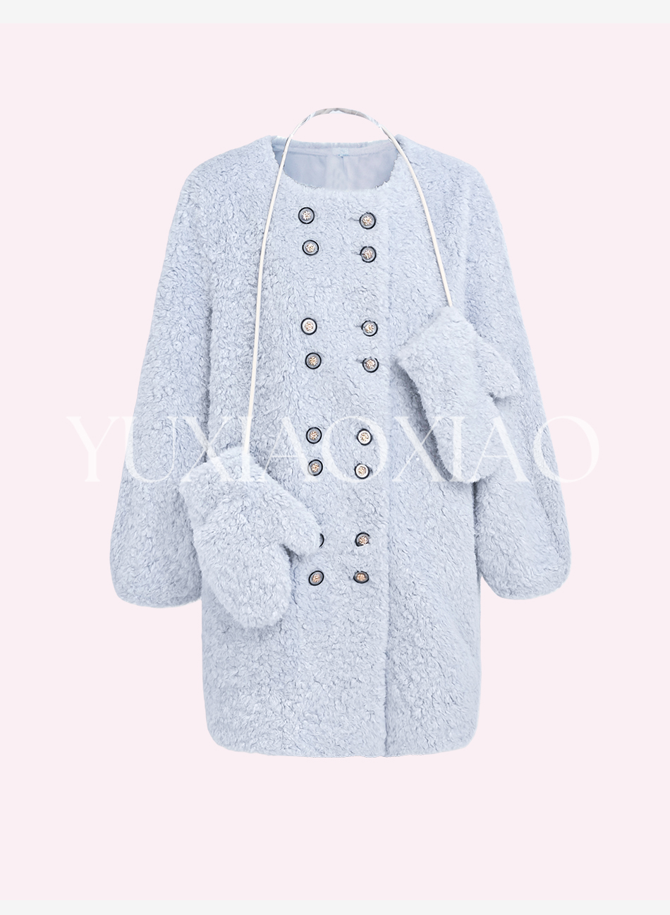 余潇潇【初雪密语】精致高级感双排金属扣圆领中长款外套配本布手套