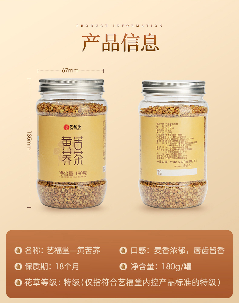 艺福堂 特级黄苦荞茶 大凉山黄金荞麦茶 180g/罐