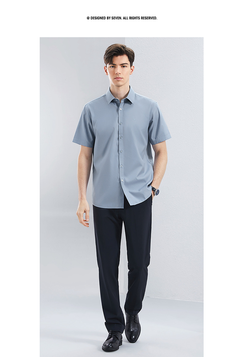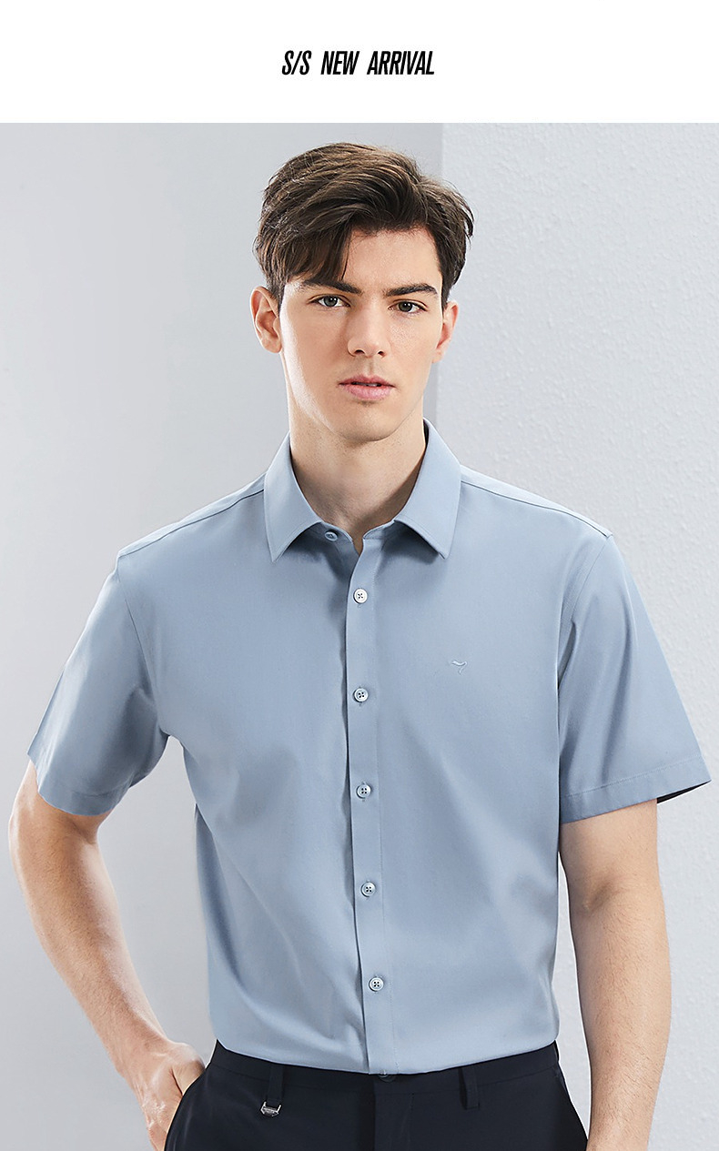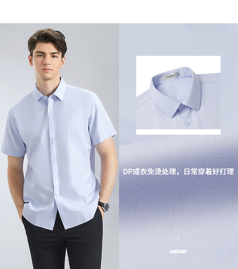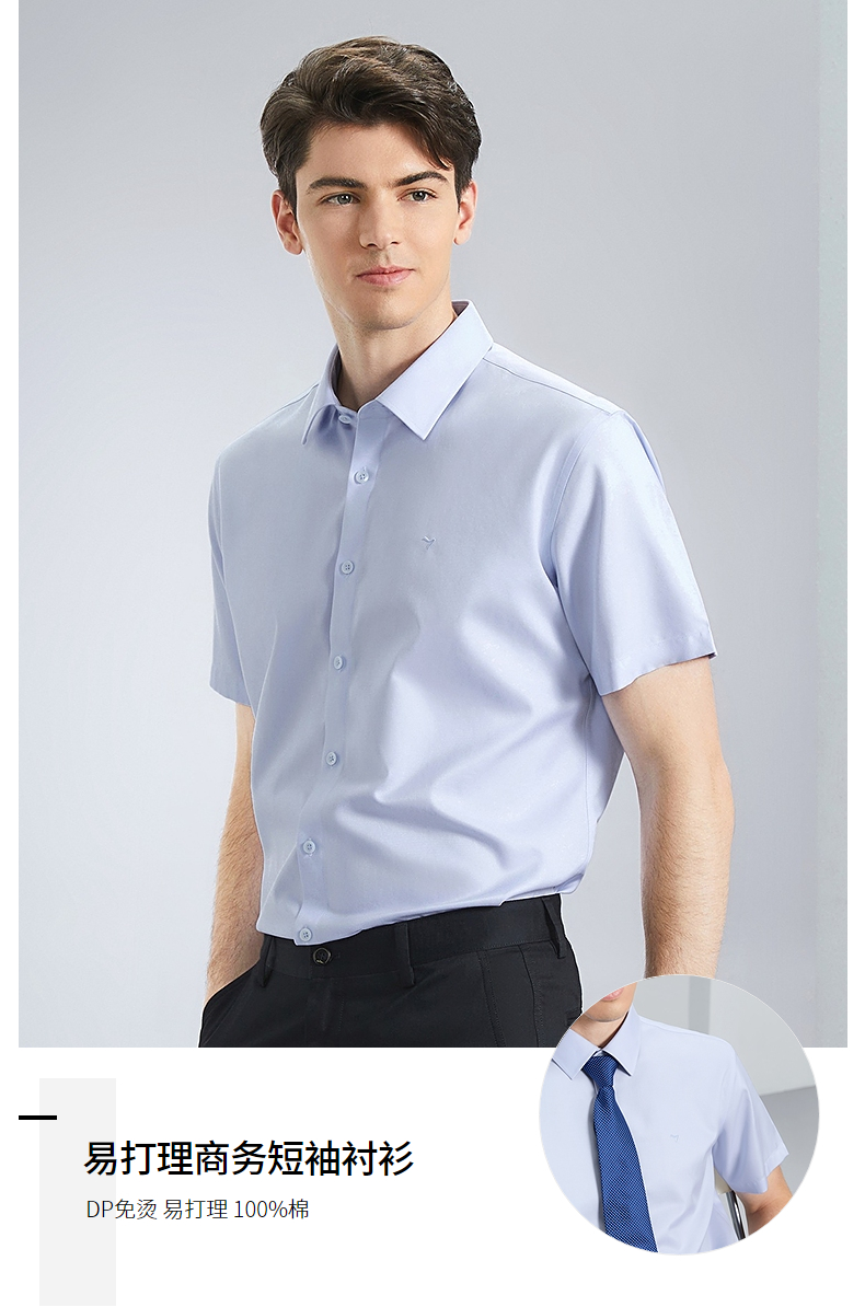 【DP免烫】柒牌短袖衬衫男2024夏季易打理商务正装纯棉翻领衬衣薄126A70350