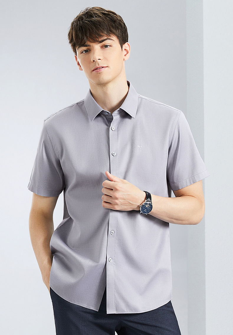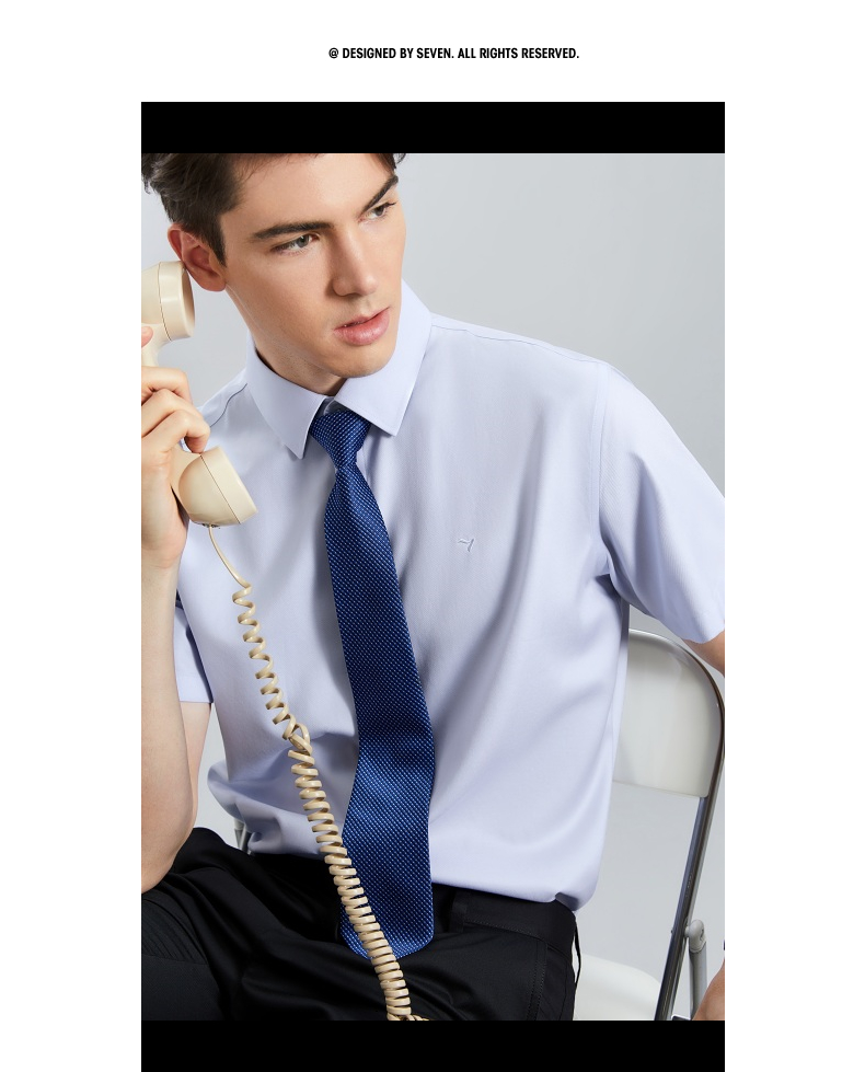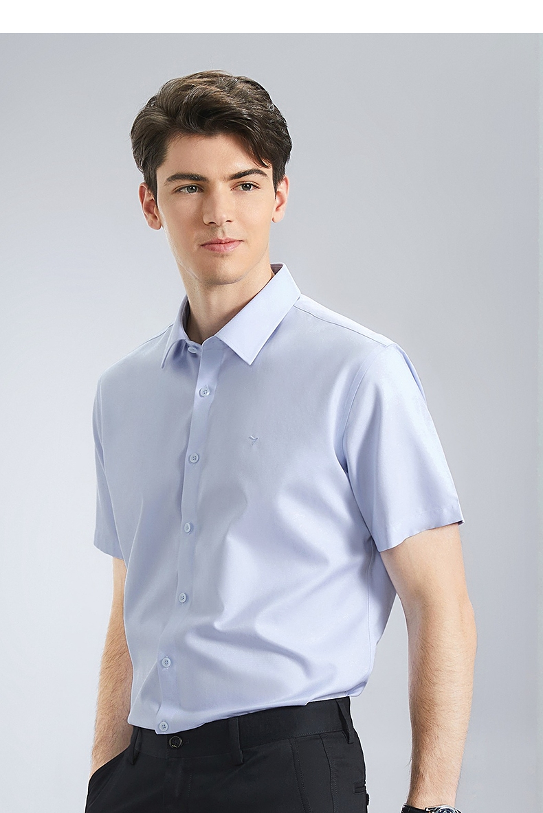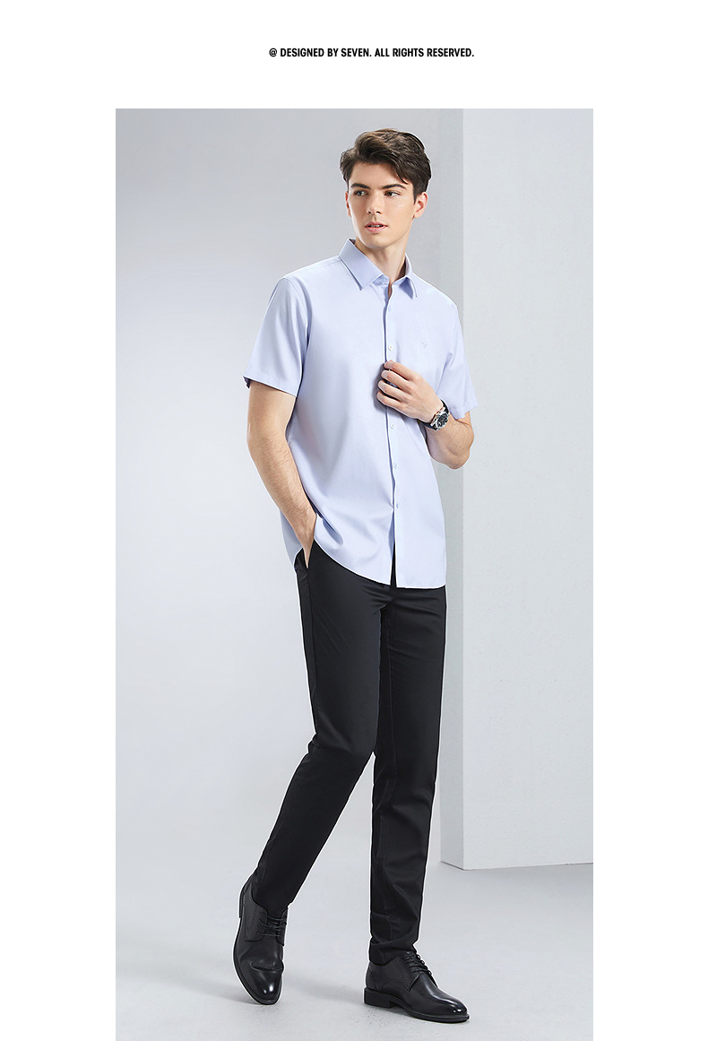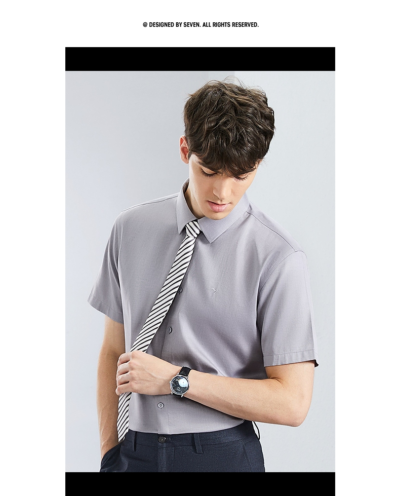 【DP免烫】柒牌短袖衬衫男2024夏季易打理商务正装纯棉翻领衬衣薄126A70350