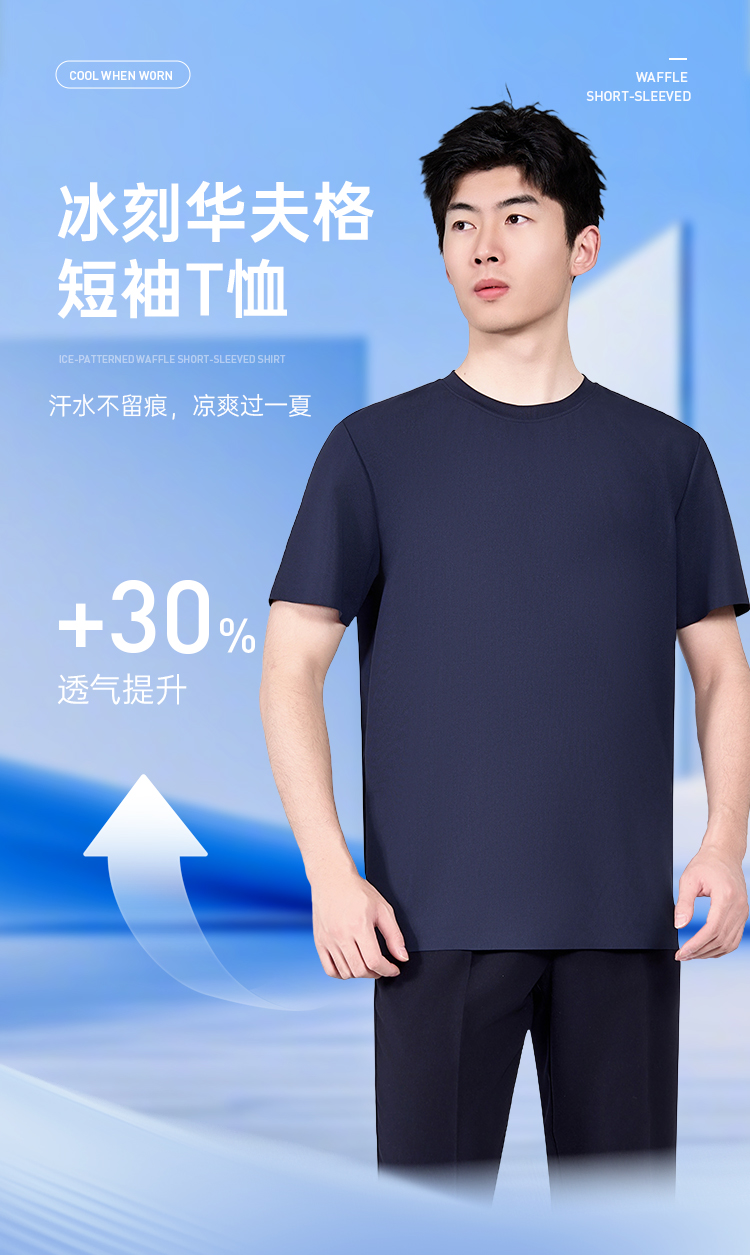 【冰刻华夫格短袖T恤】训练运动圆领短袖 干爽透气休闲半袖T恤TZ604